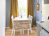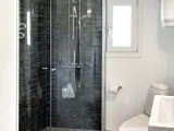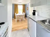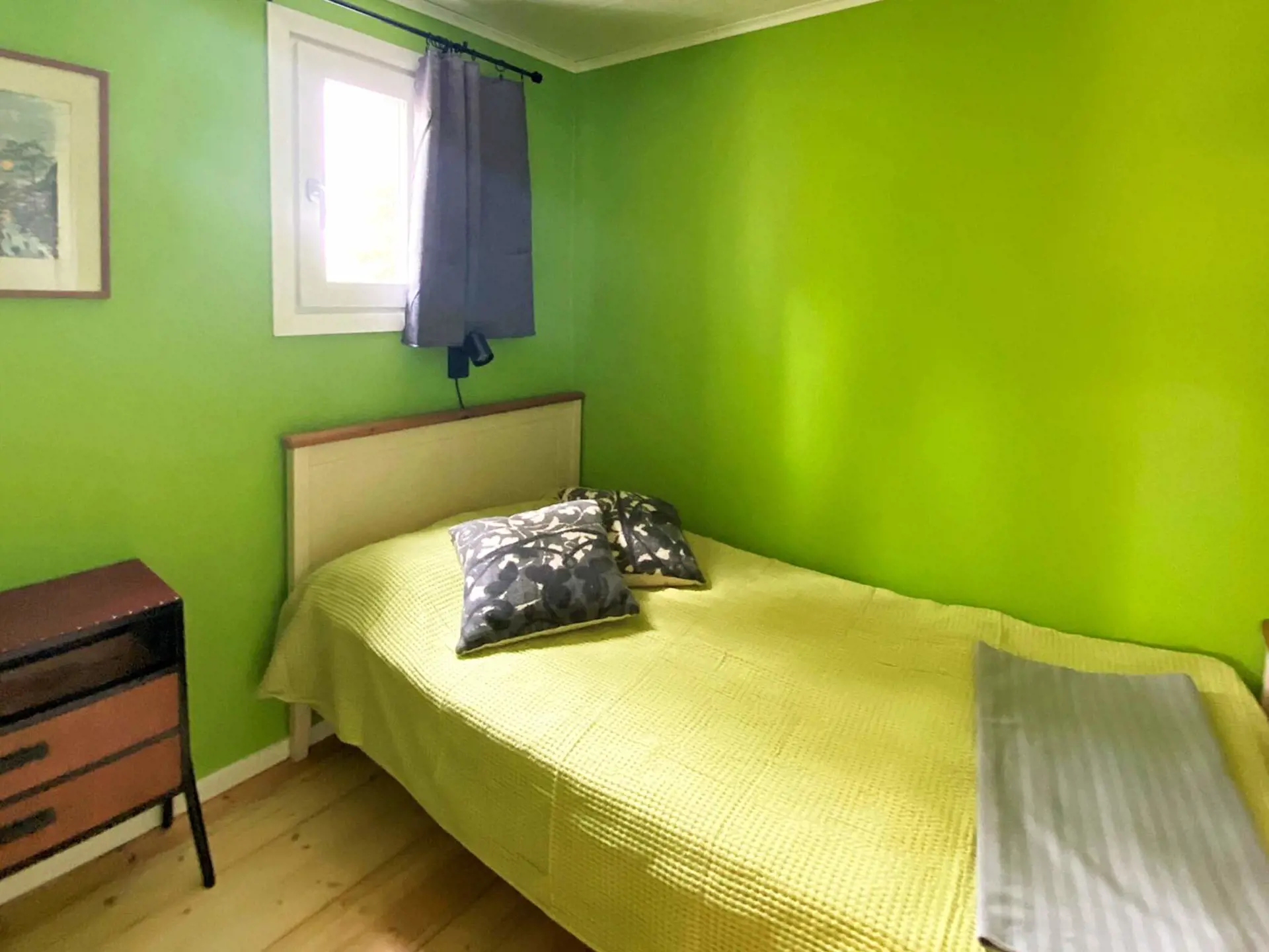 Das wohnlich eingerichtete Ferienhaus mit modernem Badezimmer hat einen offenen Küchen-/Wohnbereich für das Familienleben, mit Ess- und Sitzecke sowie Kamin für kühlere Tage. Die Sitzecke besteht aus einem Schlafsofa sowie einer ausziehbarer Doppelliege, die je nach Bedarf mit 80 oder mit 160 cm Breite geutzt werden kann. Zusätzlich zur bequemen Tempur-Doppelmatratze ist auf dem Schlafsofa noch Platz für eine kleine, z.B. 70 cm Matratze für ein Kleinkind. Außerdem gibt es ein Schlafzimmer mit einem Einzelbett im Haus. Dieses Zimmer dient zugleich als Durchgang zum Badezimmer.