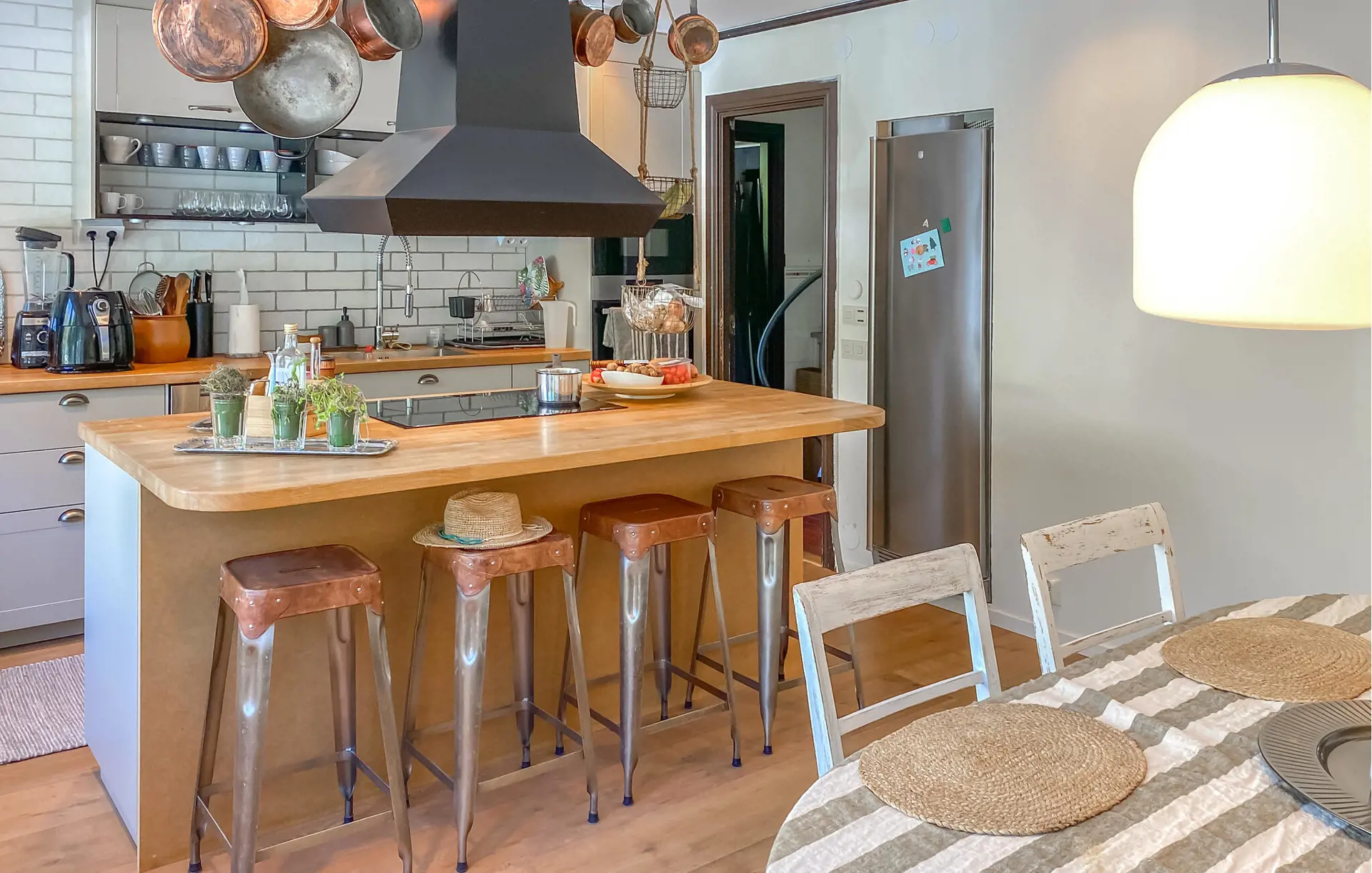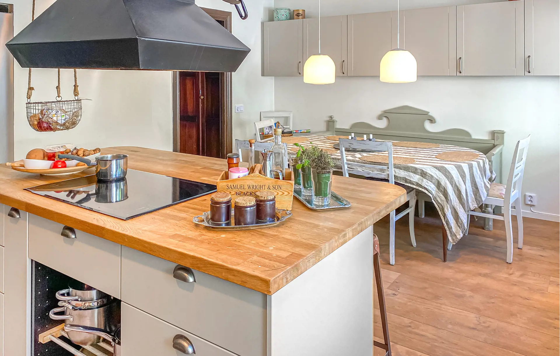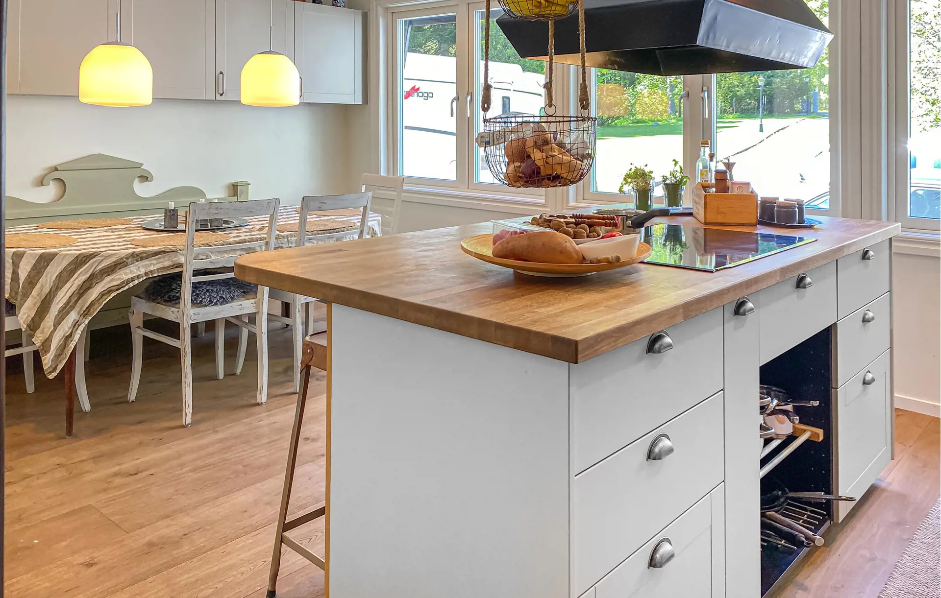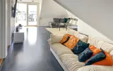 Lassen Sie den Alltag hinter sich und erleben Sie einen naturnahen Urlaub mit viel Komfort und Ruhe in einer idyllischen Umgebung mit Blick auf das glitzernde Wasser des Sees Nömmen. Das stilvoll eingerichtete Haus erwartet Sie mit einem gemütlichen Wohnbereich, einer großen Couchlandschaft und einer eleganten Einrichtung. Nutzen Sie die moderne Küche mit Kochinsel, hochwertigen Geräten und Barhockern, um gemeinsam zu kochen und zu plaudern. Genießen Sie Ihre Mahlzeiten am Esstisch mit Panoramablick auf den See oder entspannen Sie im geräumigen Wohnzimmer im Obergeschoss mit Zugang zur Dachterrasse.