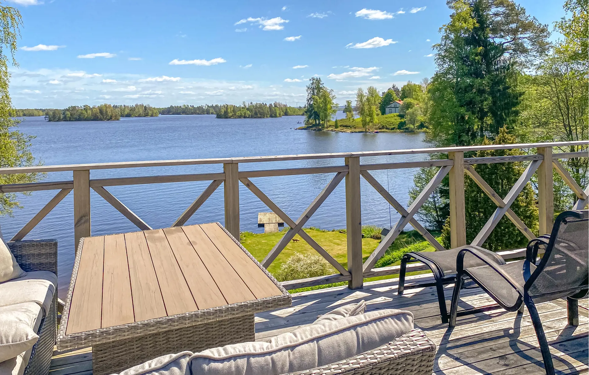 Genießen Sie wundervolle Urlaubstage in diesem großzügigen Haus mit direktem Zugang zum See.
