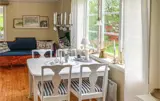 Das Ferienhaus erwartet Sie auf einem großen Grundstück, das ideal für Outdoor-Aktivitäten und zum Spielen in der Nähe der Natur geeignet ist. Das Haus verfügt über eine offene Terrasse und einen verglasten Wintergarten sowie einen Balkon von einem der Schlafzimmer. Hier finden Sie immer einen guten Platz, um mit einer Tasse Kaffee und einem guten Buch zu entspannen, während die Kinder draußen spielen. Das Haus ist geschmackvoll im alten Stil eingerichtet.