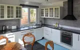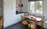 Lassen Sie sich von dem großzügigen Wohnbereich Ihrer Ferienwohnung empfangen. Nehmen Sie Platz auf dem großzügigen Sofa, lesen Sie ein Buch oder veranstalten Sie einen Filmabend mit der Familie. Die Einrichtung ist funktional und wohnlich gestaltet und bietet viel Tageslicht durch die Fenster. Die schöne Essküche bietet reichlich Platz zum Kochen und Backen. Am charmanten Holztisch kommen Sie zum gemeinsamen Frühstück oder Abendessen zusammen.