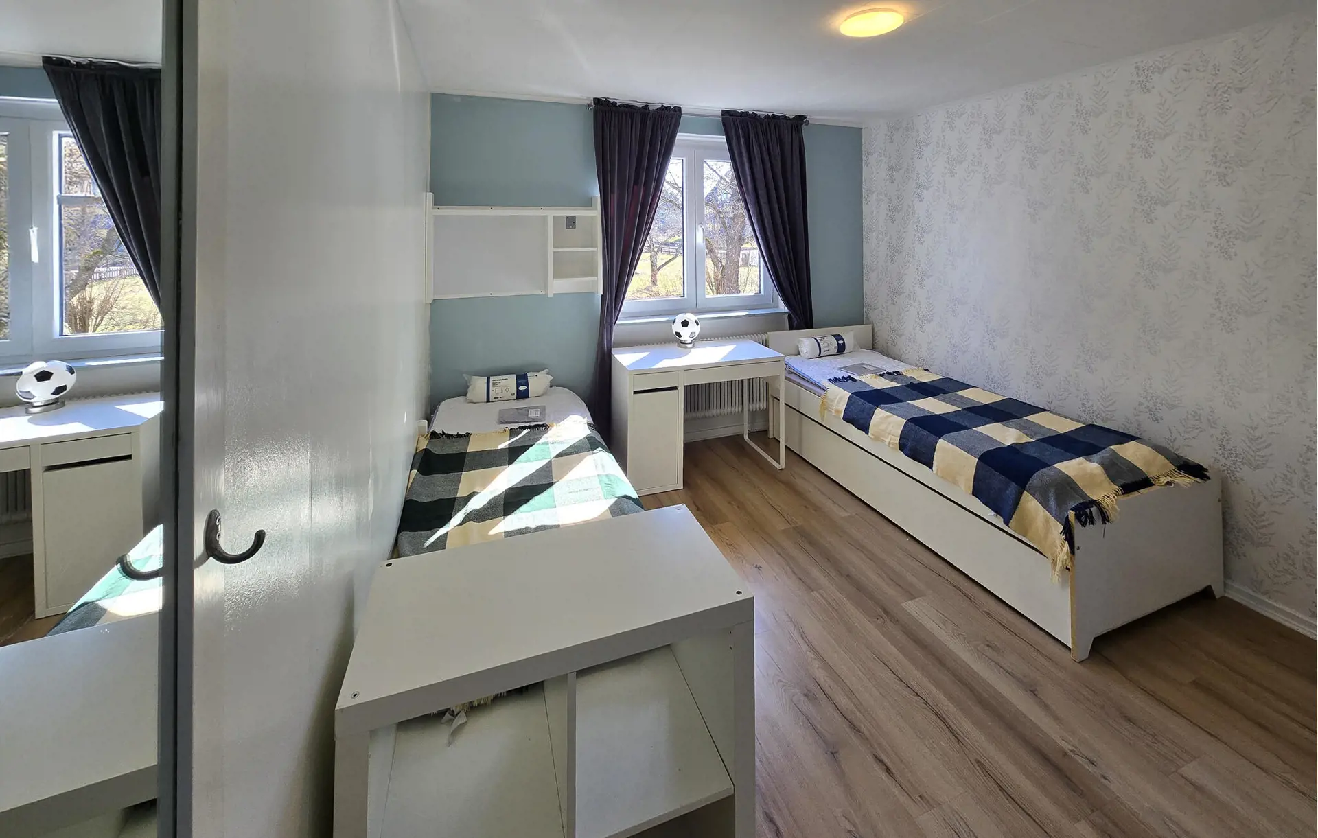 Nutzen Sie den großen Garten direkt hinter dem Haus. Spielen Sie mit Ihren Kindern auf der Rasenfläche und genießen Sie die frische Luft. Im Garten steht auch ein Trampolin zur Verfügung.