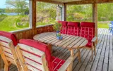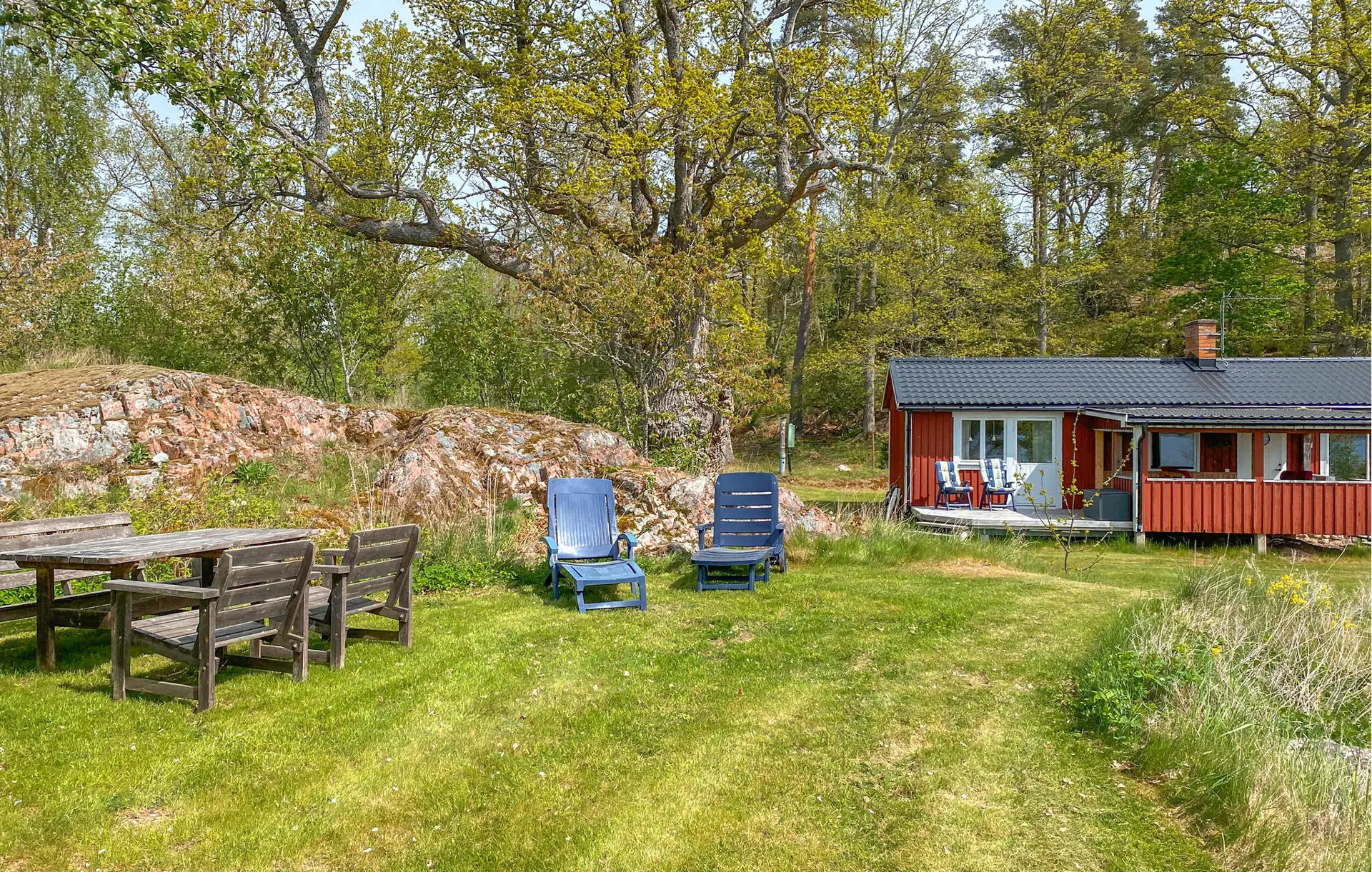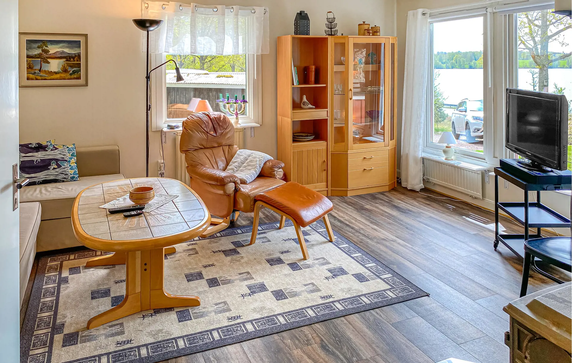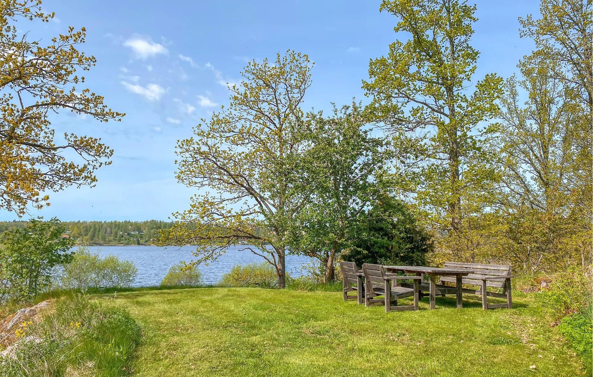 Nutzen Sie die überdachte Veranda mit Holztisch für Mahlzeiten im Freien, geschützt vor Wind und Wetter. Entspannen Sie sich auf den Sonnenliegen oder genießen Sie die Natur bei einer Tasse Kaffee im Garten. Hier lädt ein rustikales Sitzensemble zu Picknick und Gesprächen mit Seeblick ein. Starten Sie mit dem Ruderboot zu einer stillen Ausfahrt über den glitzernden See.