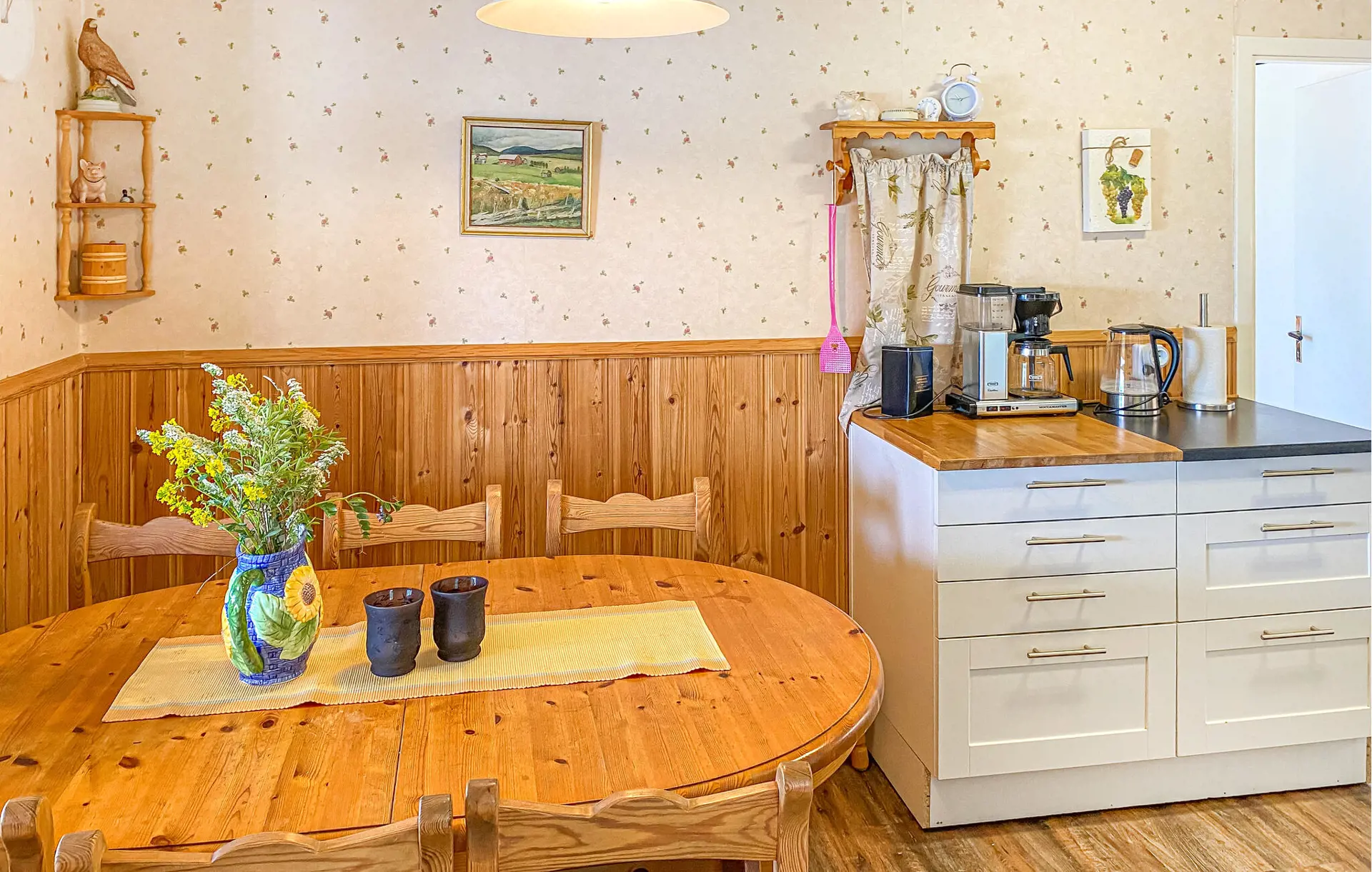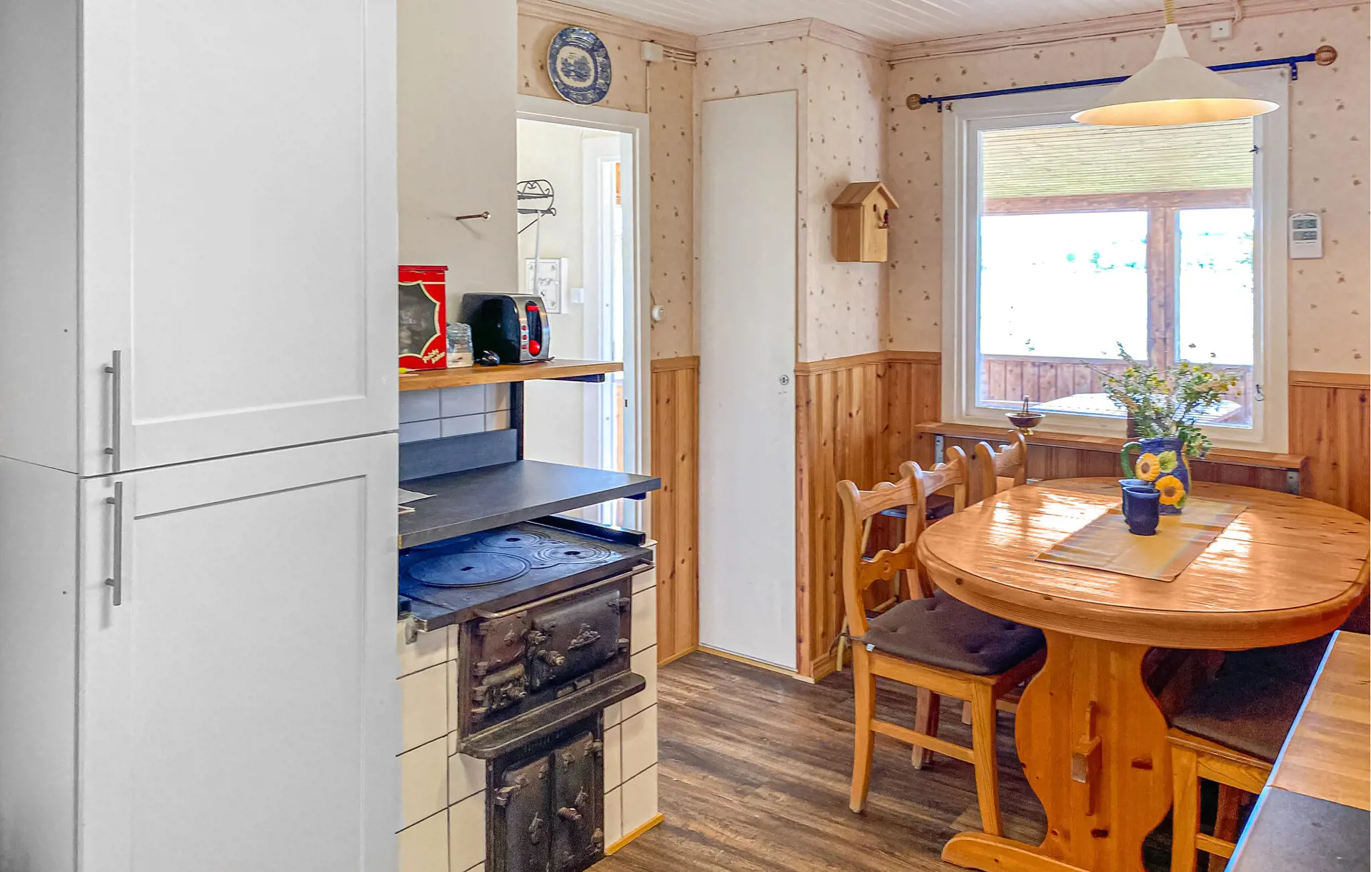 Genießen Sie entspannte Tage am Ufer des Noen-Sees in diesem traditionellen Ferienhaus. Hier schaffen die ruhige Lage, das große Grundstück und der Zugang zum eigenen Ruderboot ideale Voraussetzungen für einen entschleunigten Urlaub. Freuen Sie sich auf das wohnliche Ambiente mit heller Einrichtung, gemütlicher Sofaecke und einem komfortablen Ruhesessel am Fenster. Entspannen Sie mit einem Buch oder schauen Sie gemeinsam einen Film. Der wärmende Kaminofen sorgt an kühleren Tagen für eine behagliche Stimmung. In der praktisch gestalteten Küche bereiten Sie Ihre Mahlzeiten problemlos selbst zu.