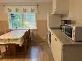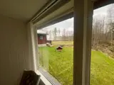 The cottage consists of a kitchen with dining area, a cozy living room, a large bathroom with shower and a Separett toilet, a waterless composting toilet. There is a family bed 120 + 80 for 2-3 people, and a summer bedroom adjacent to the conservatory. This room is not insulated all year round and is used according to recommendations from the owners only in the summer months. Here you have a large window with the same wonderful view as the glazed balcony.