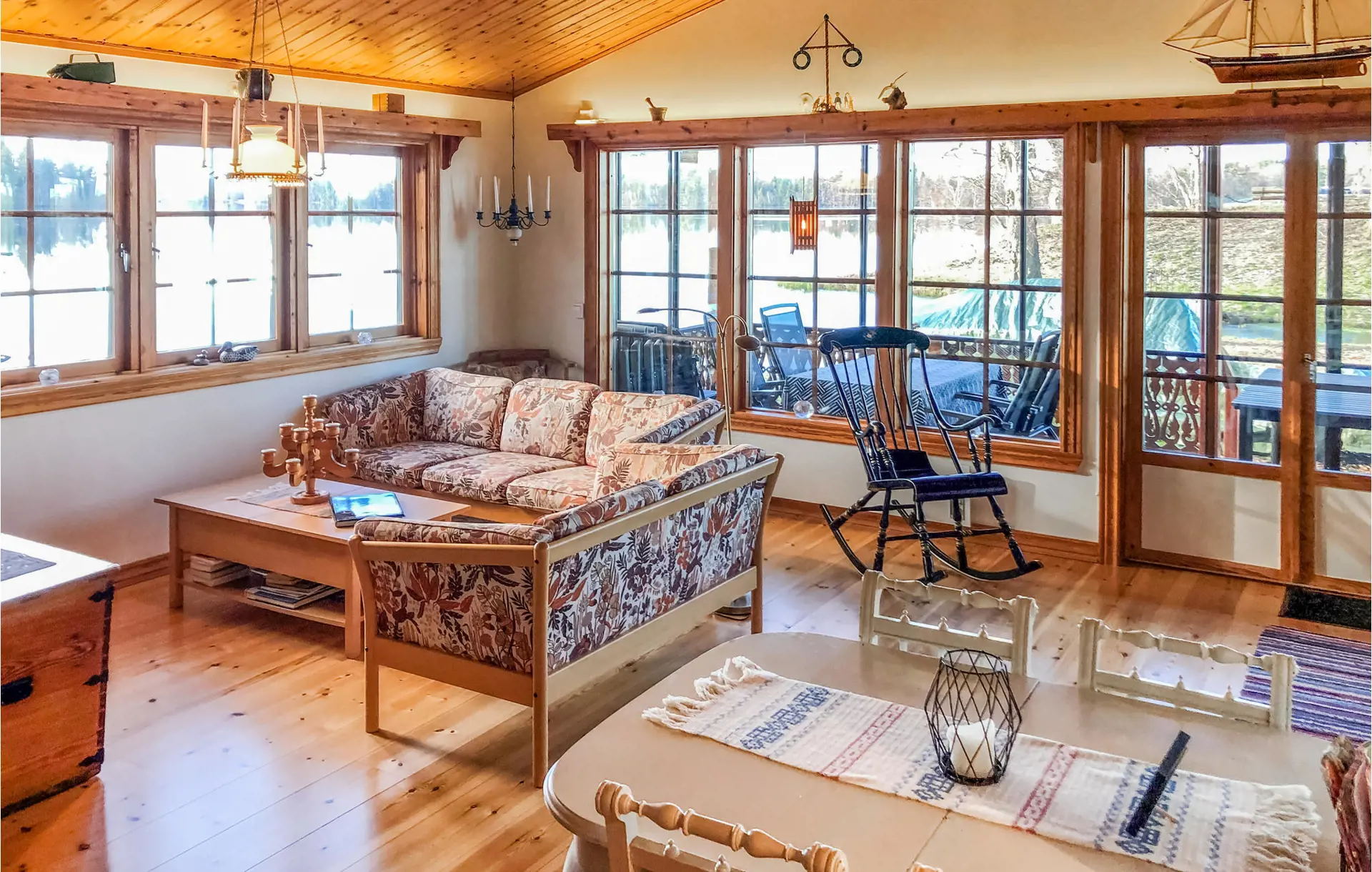 Ganz für sich allein am Nästasee liegt dieses Haus mit eigenem Boot, Steg, Strand und Inselchen und lädt Sie zu einem ruhigen Familienurlaub in der Natur ein. Hier ist recht gemütlich. Die Unterkunft wurde mit viel Liebe gestaltet und es wurde alles getan, damit Sie sich so wohl wie möglich fühlen. Freuen Sie sich auf vergnügsame Spieleabende in der Sofa-Ecke und gutes Essen an den großen Sprossenfenstern, die den Wohnraum schön erhellen und einen tollen Ausblick bieten. Auch auf der Terrasse können Sie Ihre Mahlzeiten einnehmen. Entscheiden Sie, ob Sie den ganzen Tag angeln, sich am Strand sonnen, vom Steg aus ins Wasser springen oder zu Ihrer Privatinsel rudern wollen! Am Abend können Sie am See sitzen und den Sonnenuntergang genießen.