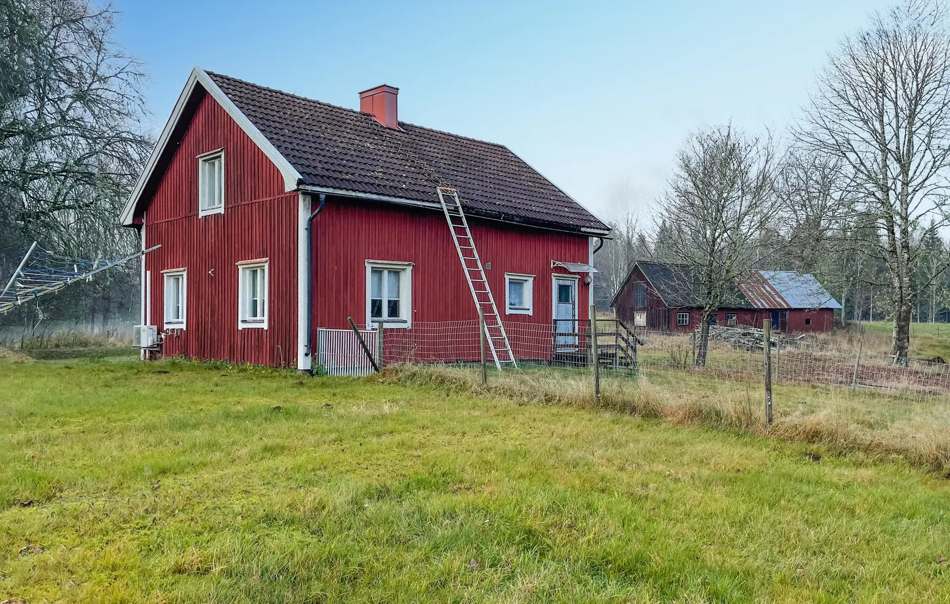 Treten Sie hinaus in den großzügigen Außenbereich und gönnen Sie sich eine Pause an der frischen Luft. Das weitläufige Grundstück ist von Wiesen, Feldern und Wald umgeben und bietet viel Raum für Spaziergänge direkt vor der Haustür. Setzen Sie sich auf die kleine Veranda oder schlendern Sie über das natürliche Gelände.