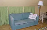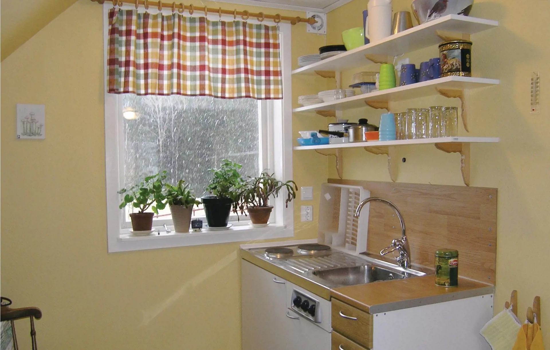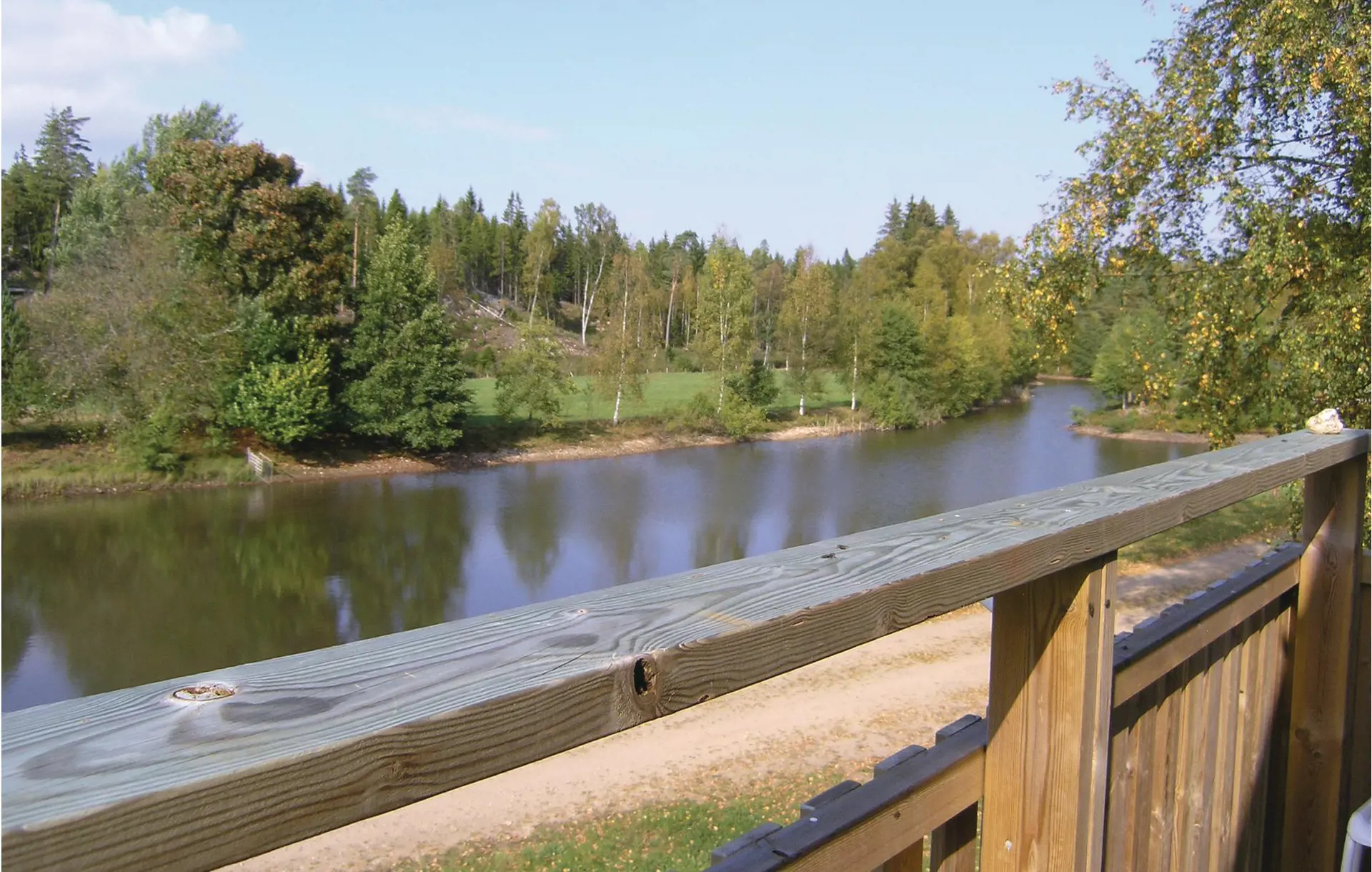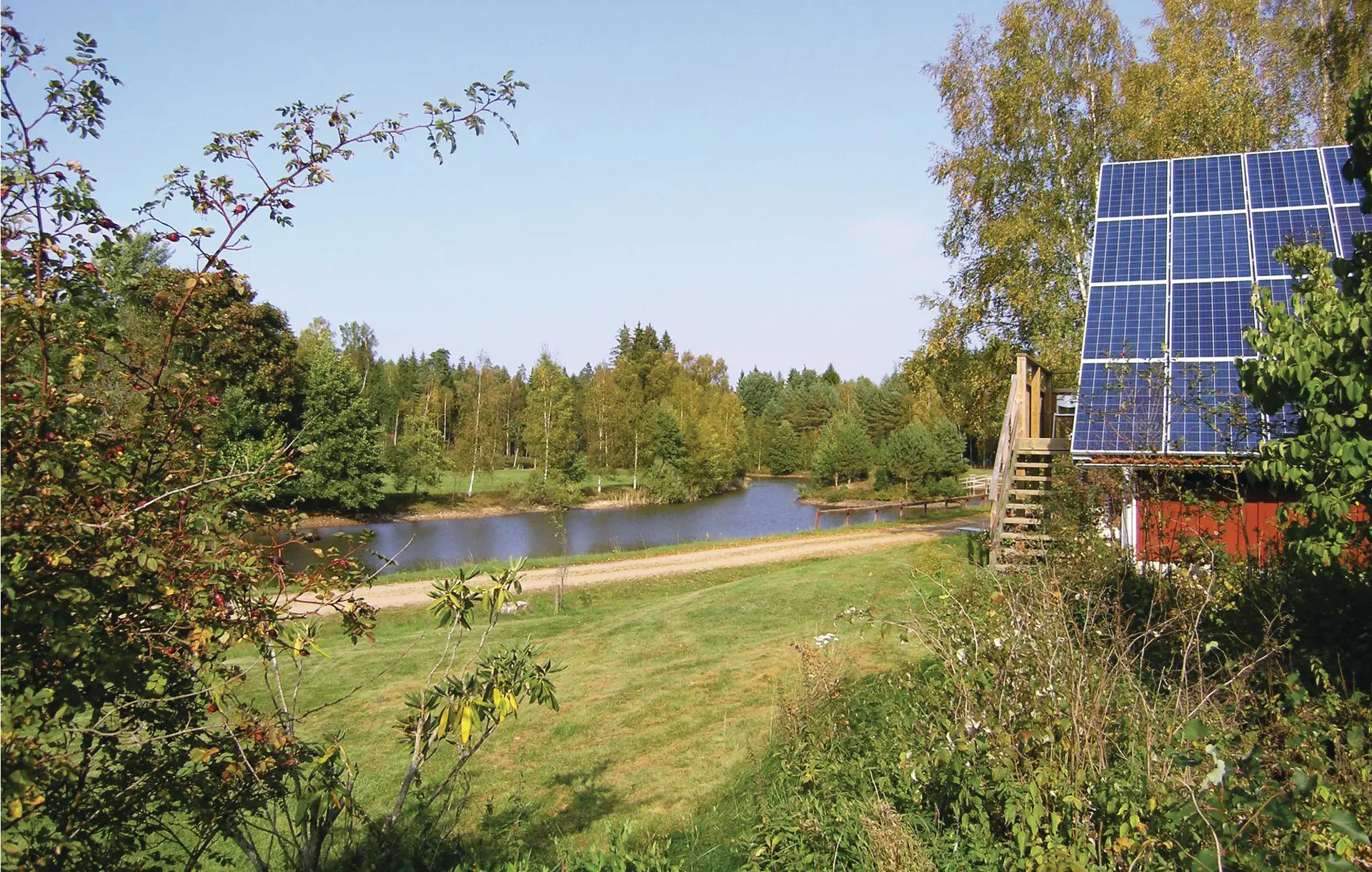 Die Wohnung liegt im Obergeschoss. Erdgeschoss mit gemeinsamer Waschküche. Große Fenster bieten einen schönen Ausblick. Im großen Wohnzimmer gibt es eine Kochnische und Schlafplätze. Sie wohnen am großen Teich und haben Aussicht auf das Wasser. Sie können hier baden, auf einer kleinen Insel sind Gartenmöbel zu finden. Kleines Boot für den Teich. Nur ein einziges Nachbarhaus. Hier genießen Sie eine ruhige Natur. Angeln können Sie am 5 km entfernt gelegenen See Bolmen oder dem Rannasjön. High Chaparral 30 km, Isaberg 40 km.