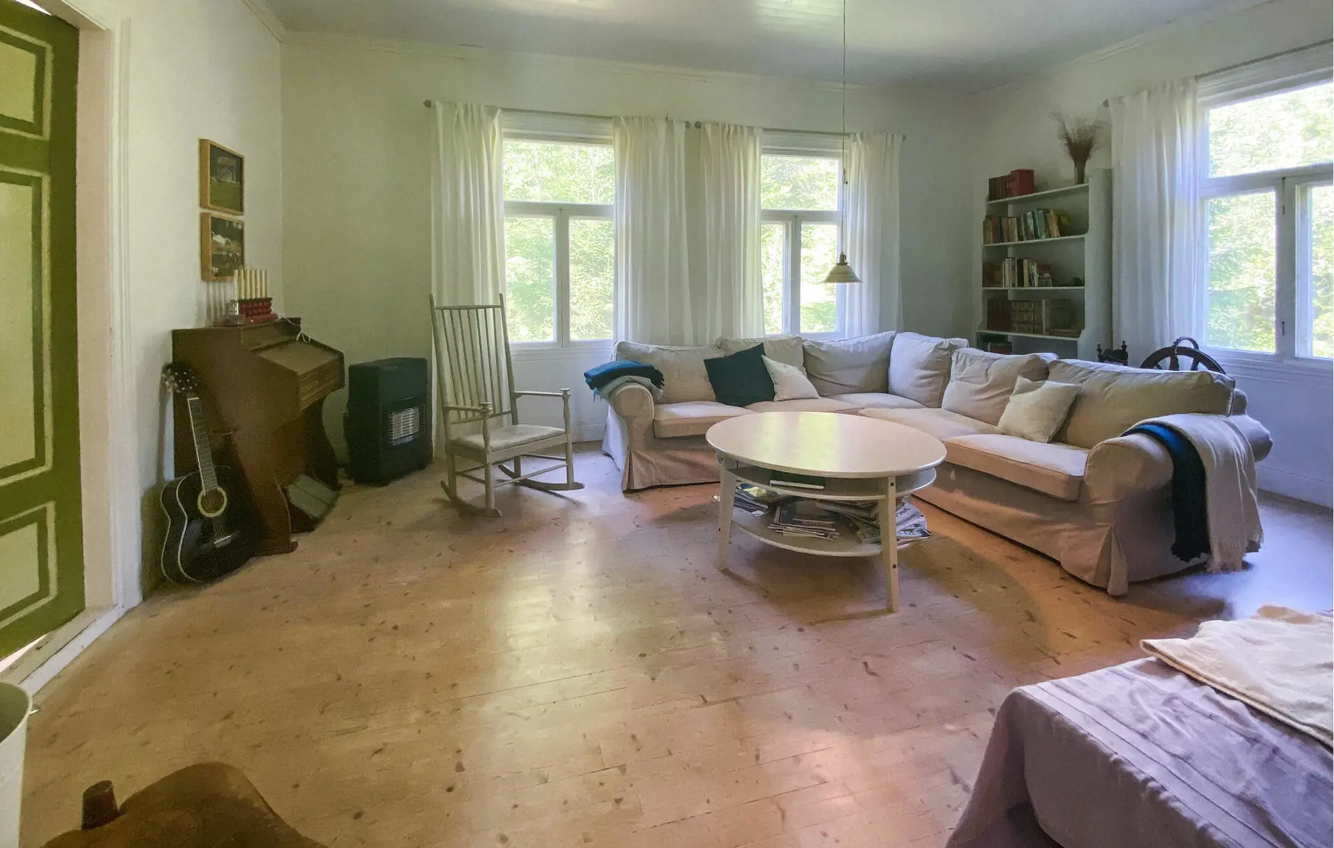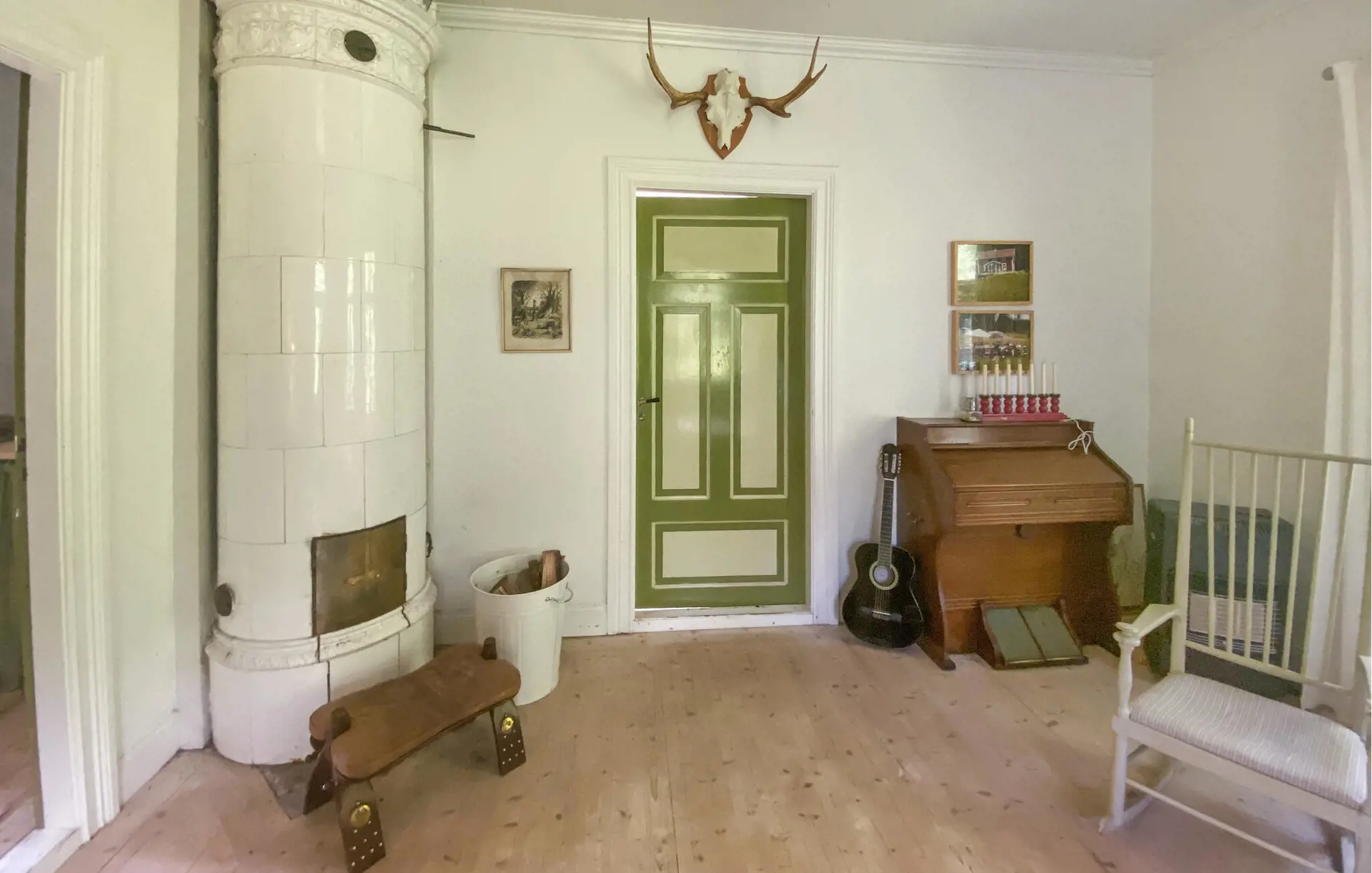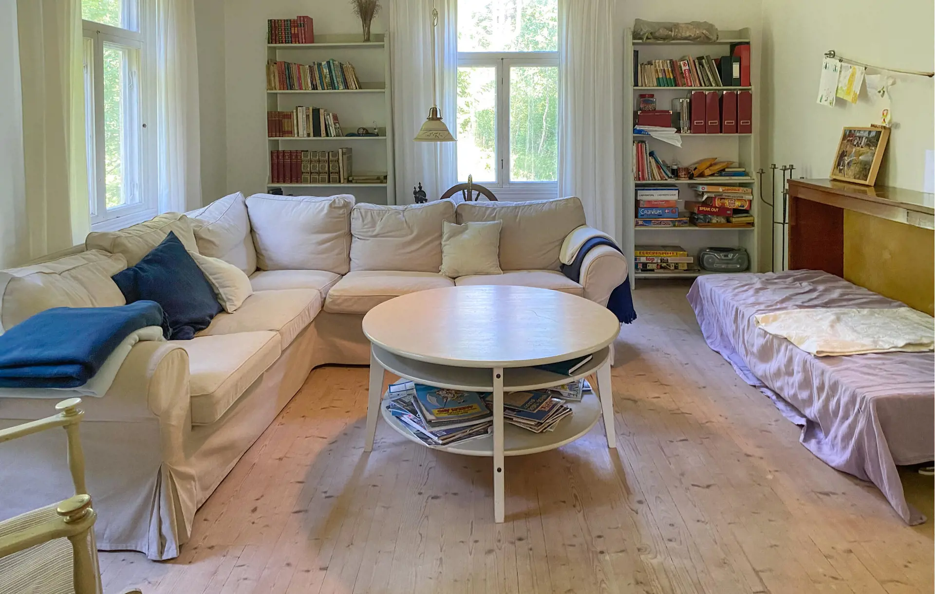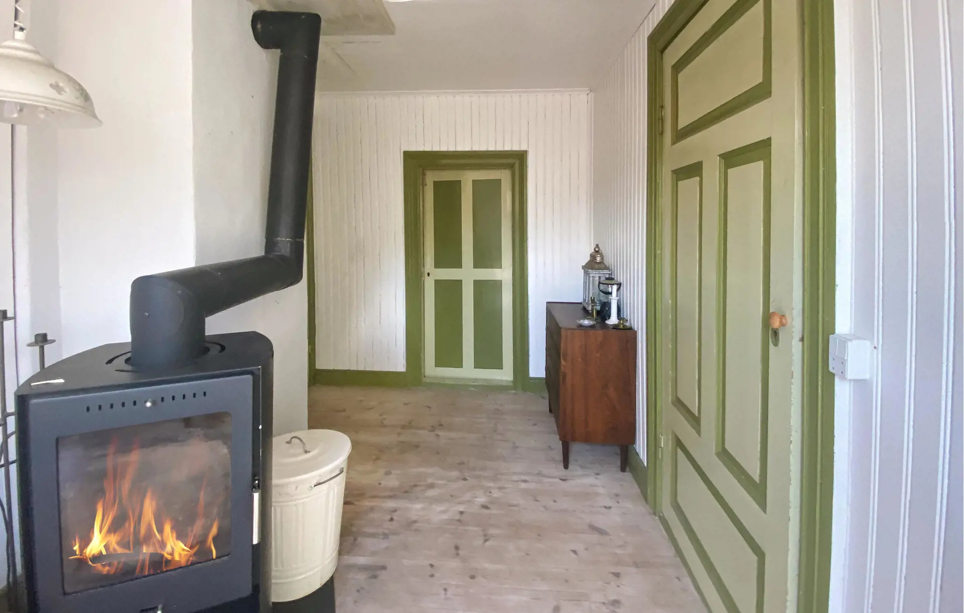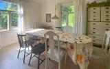 Dieses bezaubernde Ferienhaus bietet viel Platz, Frieden und Privatsphäre, während Sie sich in einer idyllischen Naturlandschaft erholen – ideal für mehrere Familien oder eine größere Gruppe. Speisen Sie mit Blick ins Grüne, entspannen Sie in der Sauna und genießen Sie gesellige Abende bei Brettspielen, während das Feuer in den Kachelöfen knistert.