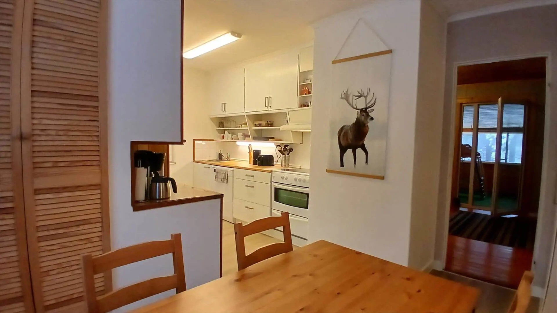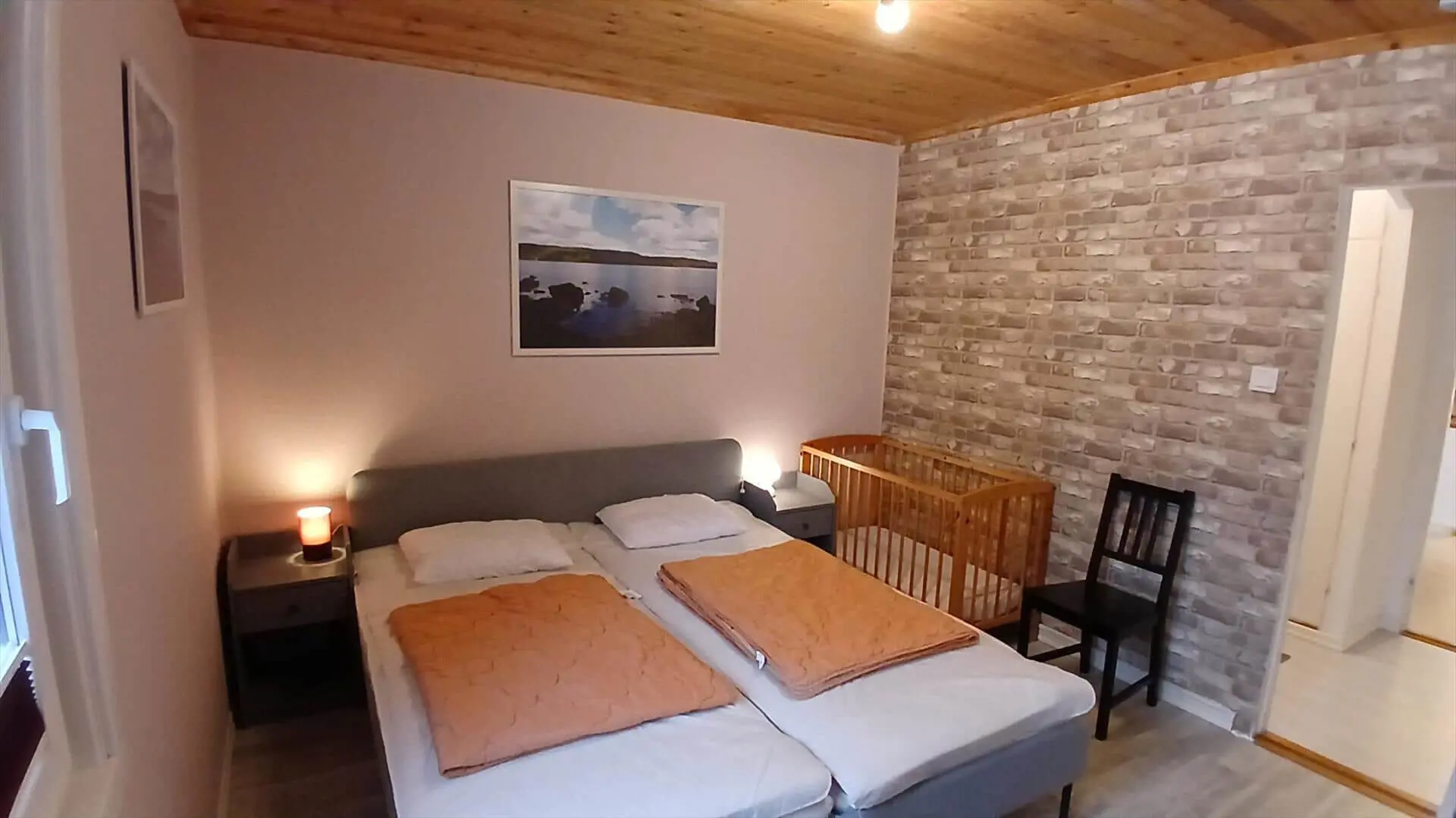 Das Ferienhaus wurde 1952 in Holzständerbauweise errichtet und in den letzten Jahren teilweise renoviert. Die Wohnfläche beträgt etwa 72 m². Das Wohnzimmer verfügt über einen Fernseher mit deutschen Programmen sowie Streamingmöglichkeiten. WLAN steht ebenfalls zur Verfügung. Vom Wohnzimmer aus erreichst du den Wintergarten mit etwa 34 m² sowie den Balkon. Die Küche verfügt über einen Essbereich mit Tischgruppe und vier Stühlen. Zusätzlich stehen mehrere Kinderstühle in unterschiedlichen Größen bereit. Zur Ausstattung der Küche gehören Geschirrspüler, Mikrowelle sowie Geschirr, auch Kindergeschirr. Im Haus befinden sich zwei Schlafzimmer. Beide Schlafzimmer sind jeweils mit einem Doppelbett und einem Gitterbett ausgestattet. In einem der Schlafzimmer kann das Doppelbett zu zwei Einzelbetten auseinandergeschoben werden. Für Familien mit kleinen Kindern ist außerdem ein Wickeltisch vorhanden. Das Badezimmer wurde renoviert und verfügt über eine Fußbodenheizung. Neue Fenster mit Plissees wurden im gesamten Haus eingebaut. Im Keller stehen eine Waschmaschine und ein Trockner zur Verfügung. Der Wintergarten bietet zusätzlich ein kleines Klettergerüst für Kinder.