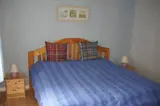 Vom Eingangsbereich führt eine Treppe ins Obergeschoss, wo Sie auf die beiden weiteren Schlafzimmer treffen, von denen eines als Einzelzimmer und das andere als Doppelzimmer mit Einzelbetten eingerichtet ist. Auch ein Babybett steht zur Verfügung. In den Dachschrägen sind große Schränke eingelassen. Vom Einzelzimmer aus gelangen Sie auch hinaus auf den Balkon.