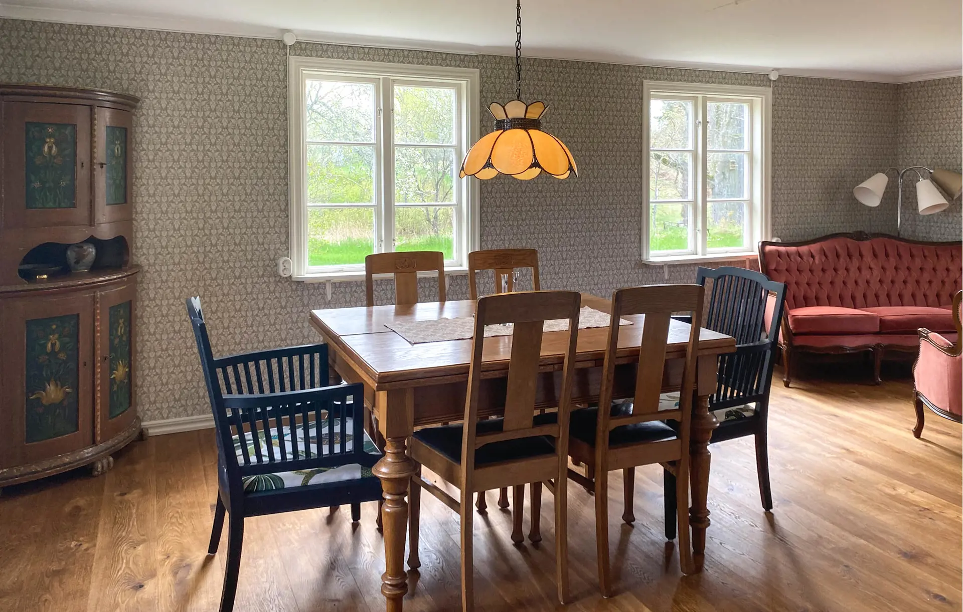 Verbringen Sie erholsame Tage zu zweit in naturnaher Umgebung mit viel Komfort und einem Hauch von Nostalgie. Ihr Ferienhaus am See Våmmesjö bei Mörlunda bietet ideale Voraussetzungen für eine wohltuende Pause fernab vom Alltag. Treten Sie ein in das liebevoll eingerichtete Haus mit warmen Holzböden, klassischem Interieur und schönen Möbeln. Genießen Sie gemeinsame Mahlzeiten im gemütlichen Esszimmer, entspannen Sie sich auf dem Sofa oder nehmen Sie sich Zeit für ein gutes Buch in den stilvollen Sesseln. Nutzen Sie die holzbefeuerte Sauna, um Körper und Geist eine wohltuende Pause zu gönnen.