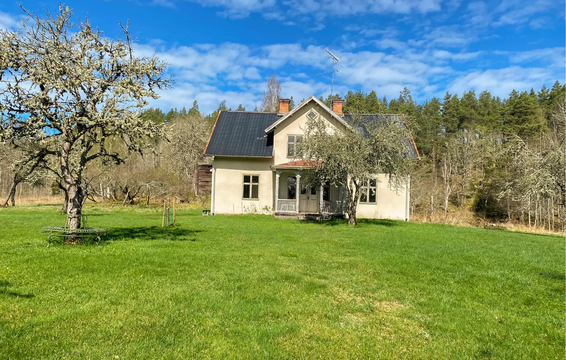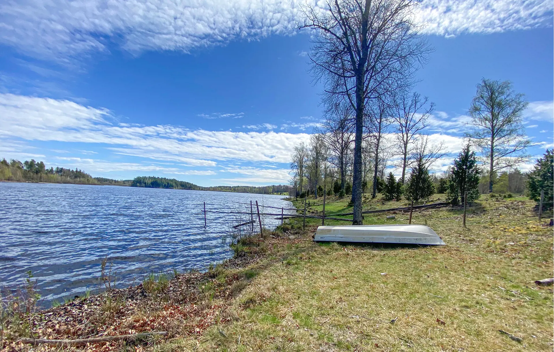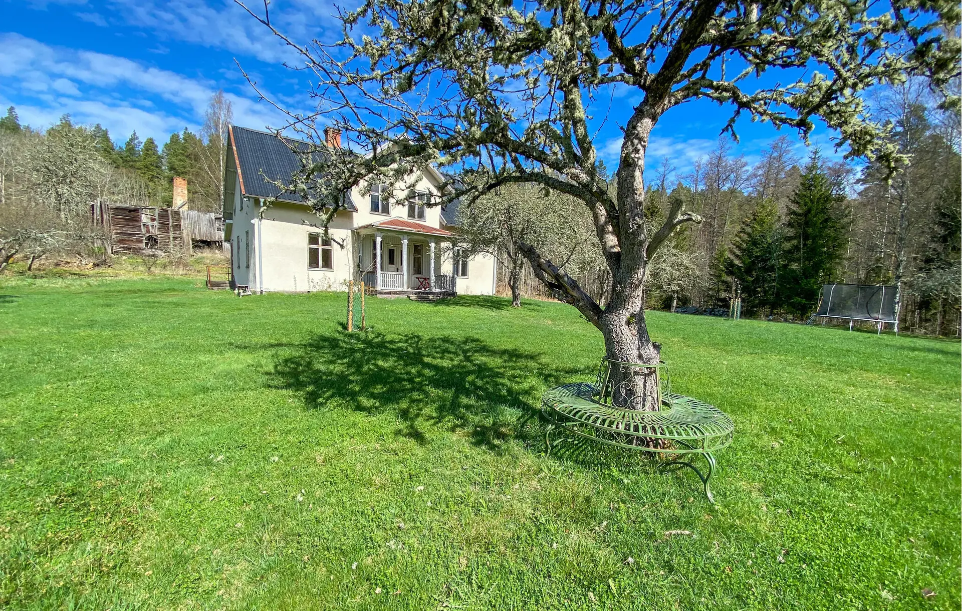 Treten Sie durch die alten Doppeltüren auf die Veranda und atmen Sie die frische Landluft ein. Der große Garten mit alten Bäumen lädt zum Spielen und Verweilen ein. Lassen Sie Ihre Kinder auf dem Trampolin springen, während Sie die Ruhe der Umgebung genießen. Mieten Sie ein Ruderboot und unternehmen Sie eine Tour auf dem See. Ein kurzer Fußweg führt direkt zum Wasser.