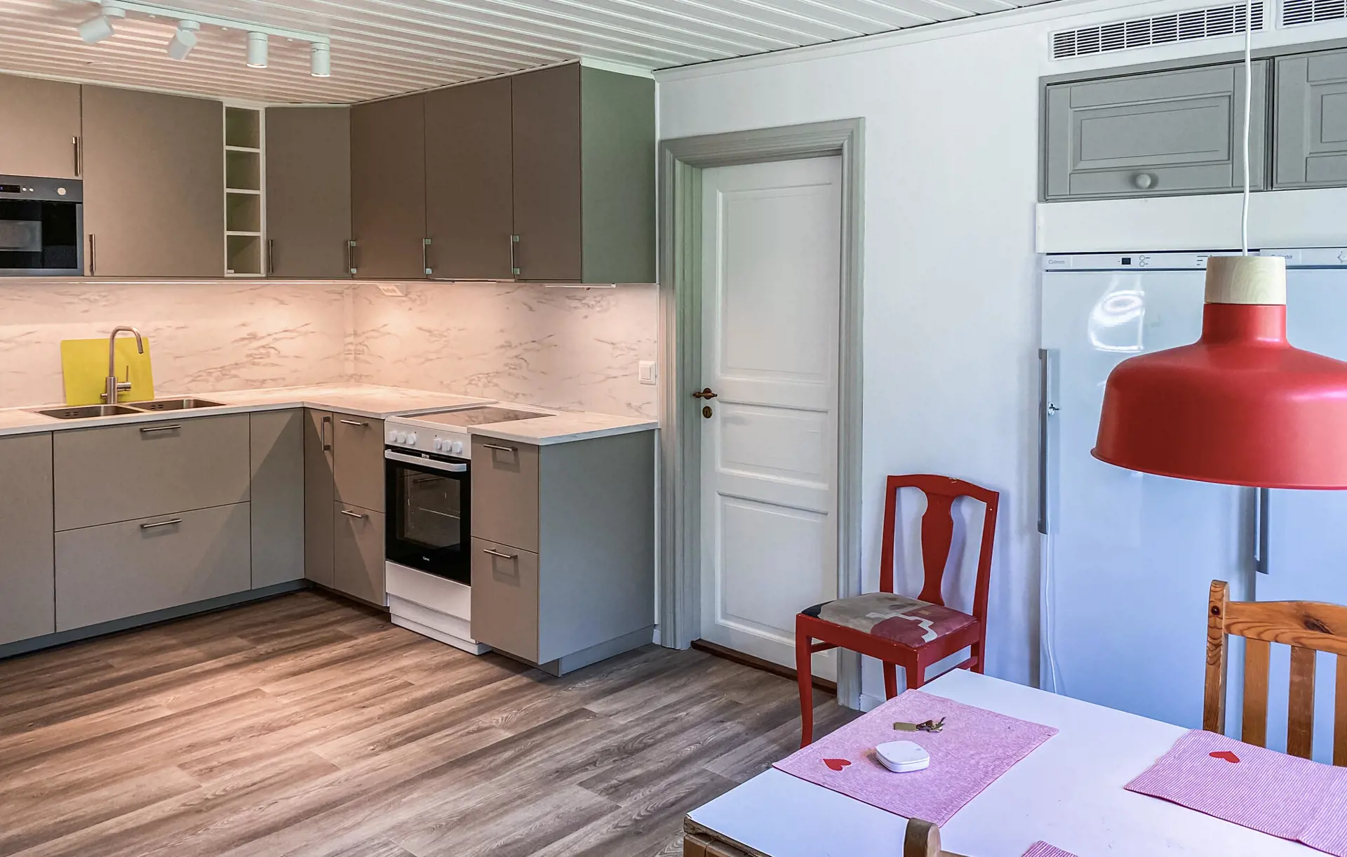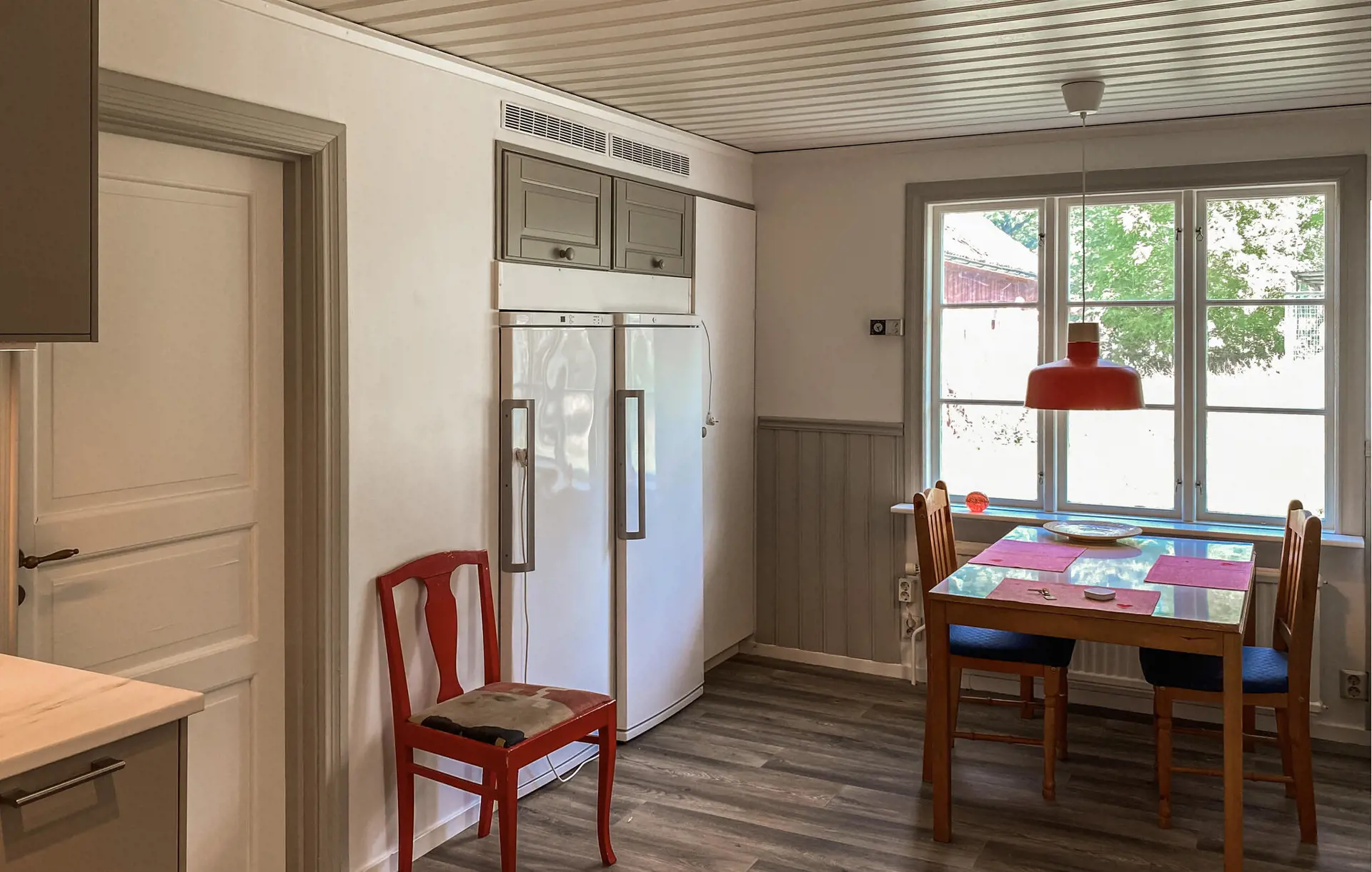 In diesem charmanten Ferienhaus bei Virserum finden Sie den perfekten Rückzugsort für eine entspannte Auszeit. Umgeben von grüner Natur bietet das Haus eine warme und einladende Atmosphäre. Der offene Wohnbereich ist gemütlich und mit viel Holz gestaltet, was dem Interieur einen typisch skandinavischen Charakter verleiht. Große Fenster lassen viel Licht herein und geben den Blick in den Garten frei. Hier können Sie die Ruhe genießen und auf dem Rasen entspannen – ein wunderbarer Ort, um die Seele baumeln zu lassen und dem Alltagsstress zu entfliehen.