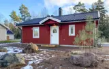 Freuen Sie sich auf dieses charmante Ferienhaus mit seiner typisch schwedenroten Fassade, das Ihnen einen erholsamen Aufenthalt in idyllischer Umgebung bietet.
