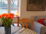 Das Haus ist geräumig und gepflegt eingerichtet und hat u.a. ein gr. Wohnzimmer mit Essecke. Die SZ befinden sich in der oberen Etage, eines ist mit Doppelbett, das zweite mit vier Einzelbetten eingerichtet. Zudem steht in einem Aufenthaltsbereich im Parterre eine doppelte Schlafcouch als Ausweichmöglichekeit zur Verfügung. Das Haus ist jedoch für max. 6 Personen zugelassen! WLAN im Haus, via fiber.