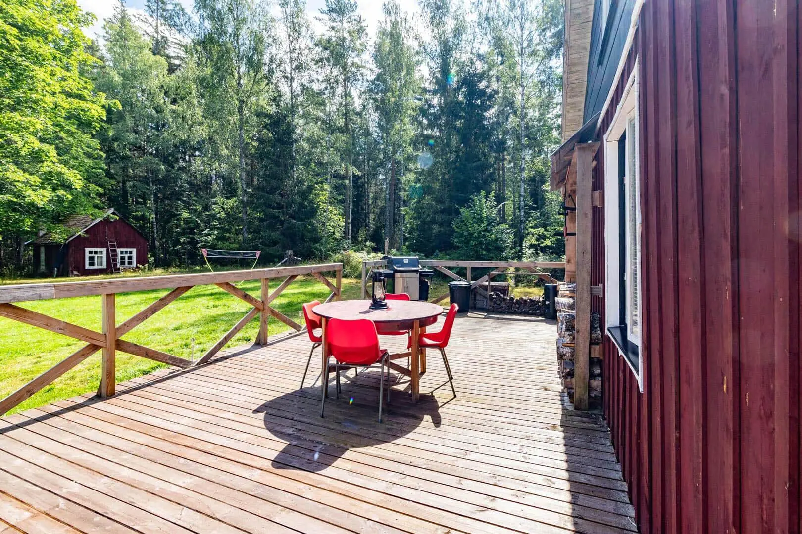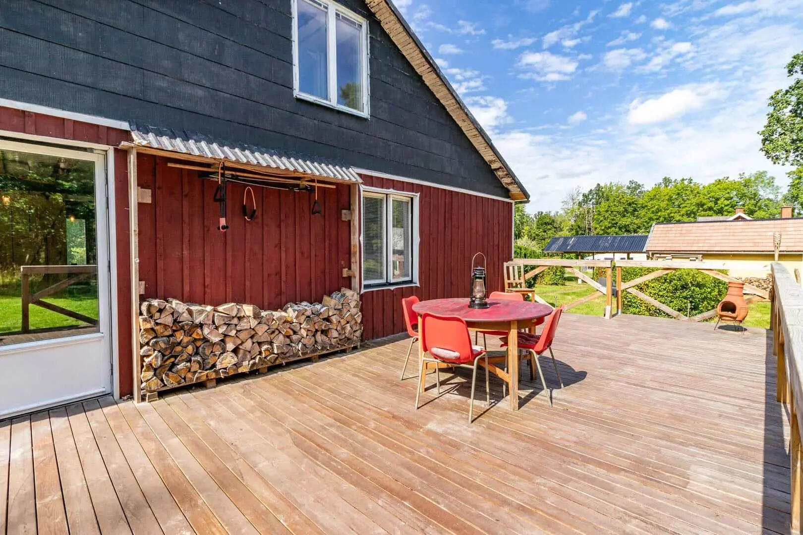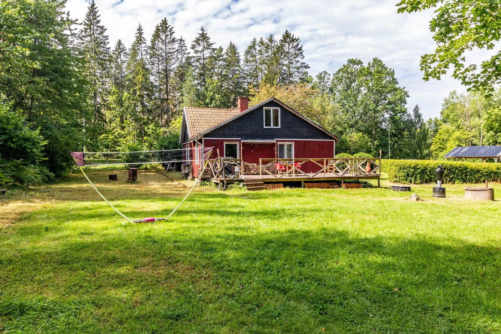 Diese Unterkunft hat eine Fläche von 80 m² und befindet sich auf einem 2.783 m² Grundstück, u.a. mit Schaukel und Spielhaus.
