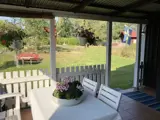 Dieses charmante Haus verfügt über eine schöne überdachte Terrasse, die bei jedem Wetter genutzt werden kann. Im Inneren befindet sich ein großes und komfortables Wohnzimmer mit TV und einem Holzofen, der an kühlen Abenden Gemütlichkeit und zusätzliche Wärme verbreitet. Es gibt 2 Schlafzimmer; Eines verfügt über 2 Einzelbetten, die gegeneinander gestellt werden. Das zweite Schlafzimmer verfügt über ein normales Etagenbett (2 Personen) und ein Alkoven-artiges, speziell gebautes Etagenbett (auch für 2 Personen). Die Küche ist mit allem ausgestattet, was Sie zum Kochen benötigen. Das Badezimmer ist hell und mit Dusche und WC ausgestattet.