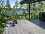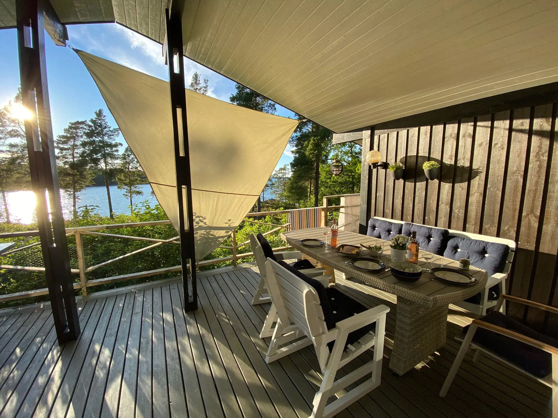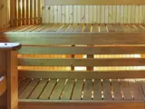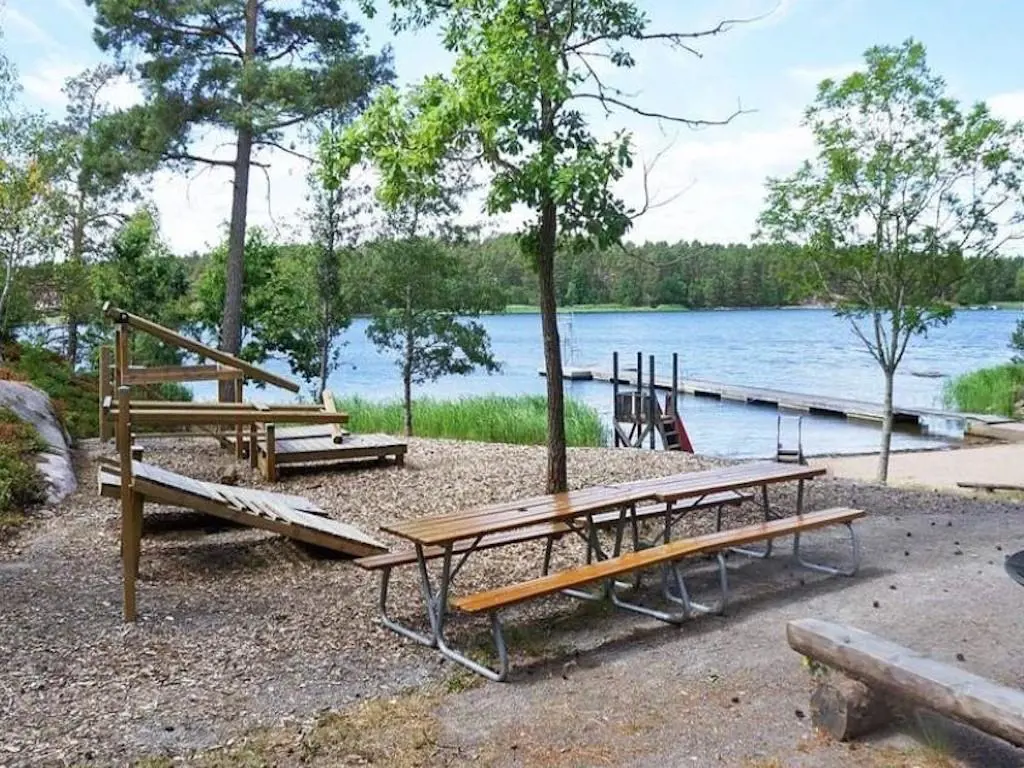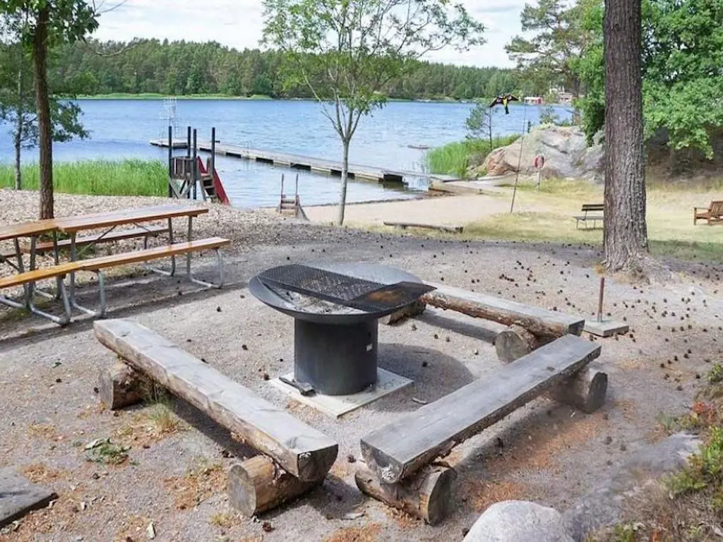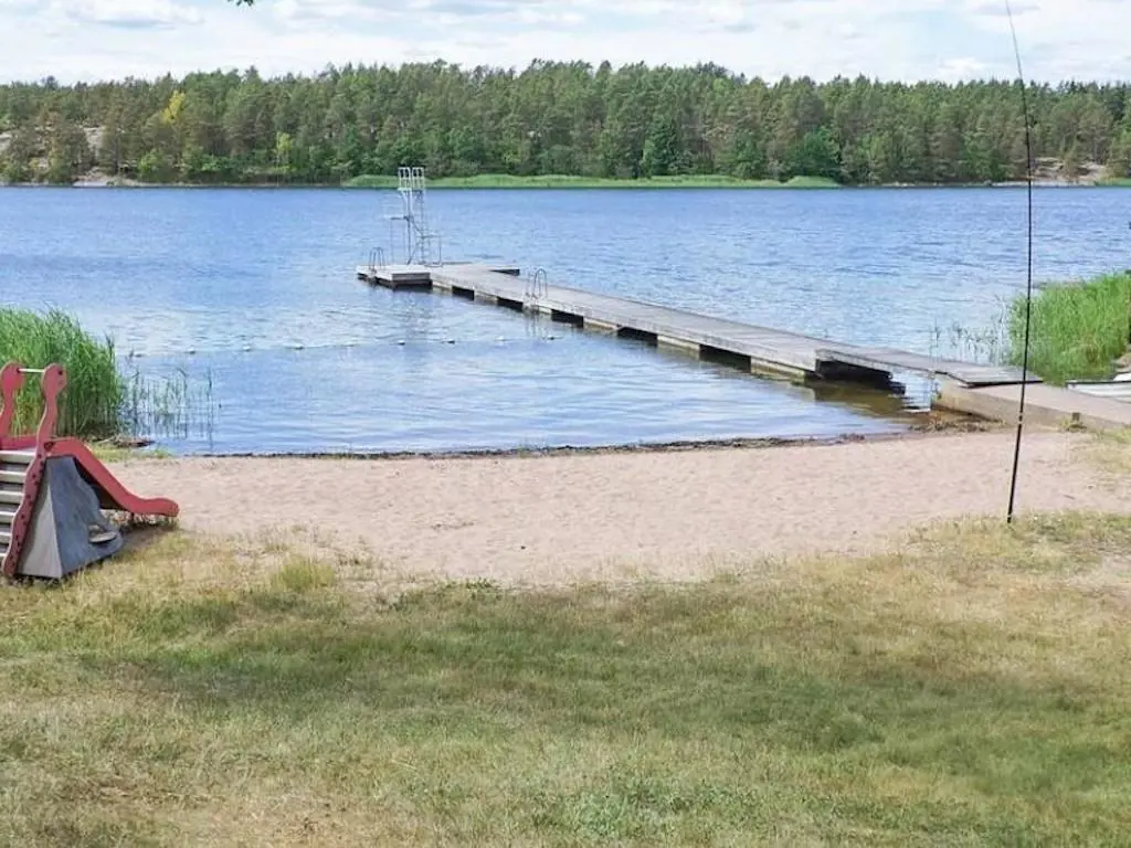 Der große, schöne Badestrand ist weniger als 100 Meter entfernt. Da gibt es einen Sandstrand, Rasenflächen, Gymnastik- und Spielgeräte im Freien, einen Grillplatz, Badebrücken, einen Sprungturm und eine große, schöne Sauna, die sich alle im Ferienhaus-Bereich teilen.