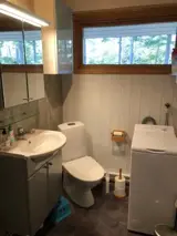 Es gibt 3 Schlafzimmer. Ein etwas größeres Zimmer mit Doppelbett und zwei etwas kleinere Zimmer mit zwei breitere Einzelbetten (120 cm und 140 cm). Neu renovierte Toilette und Dusche (2021). Hier ist auch die Waschmaschine.