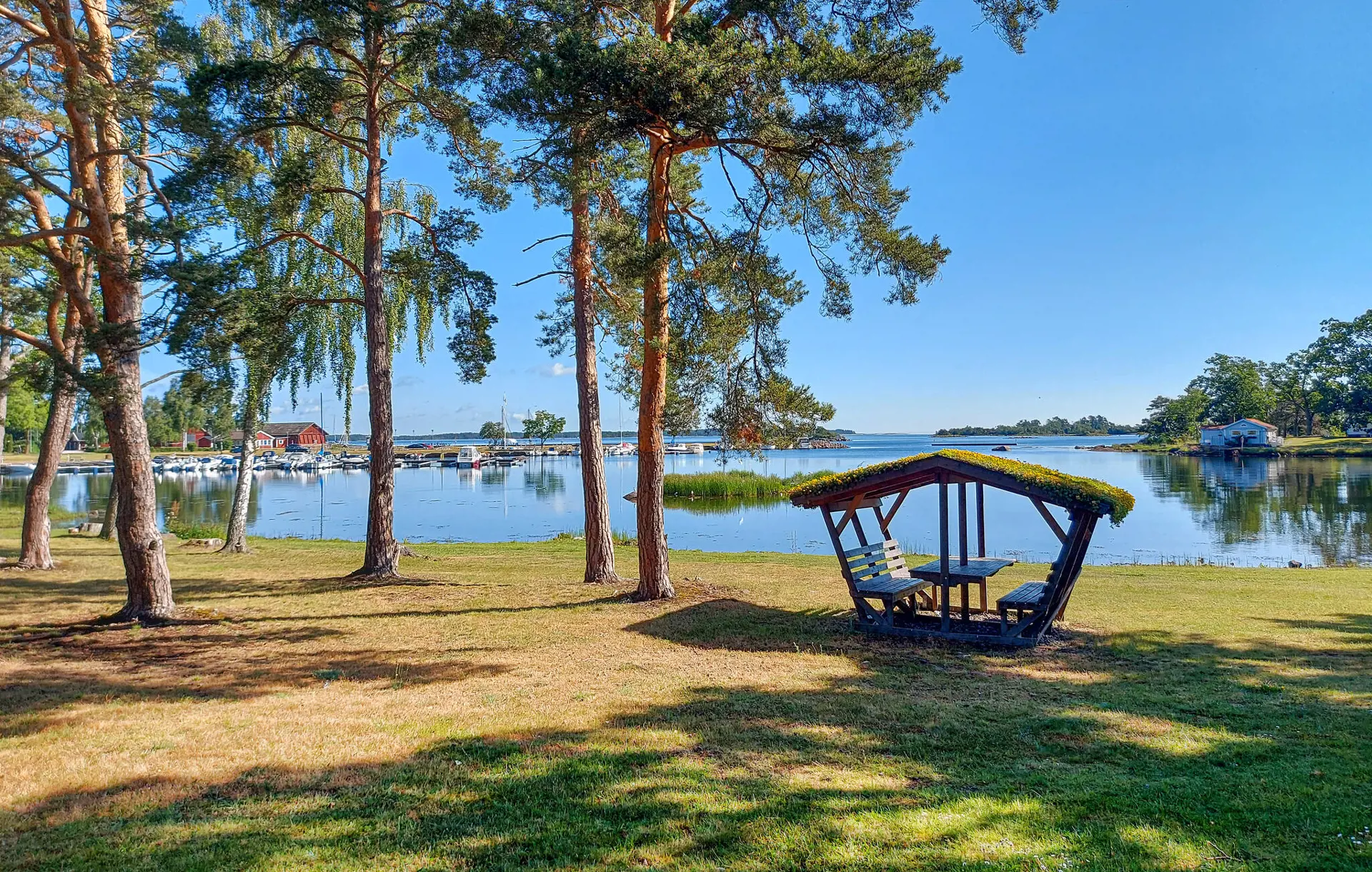 Gehen Sie nach draußen und genießen Sie die großzügige Terrasse. Nehmen Sie Platz auf den Holzmöbeln im überdachten Bereich oder entspannen Sie im Garten mit viel Grünfläche. Spüren Sie die Ruhe und lassen Sie den Blick über das Grundstück schweifen. Auf Wunsch können Sie direkt beim Hausbesitzer Kanus und Kajaks mieten und so die Schärenküste aktiv vom Wasser aus erkunden.
