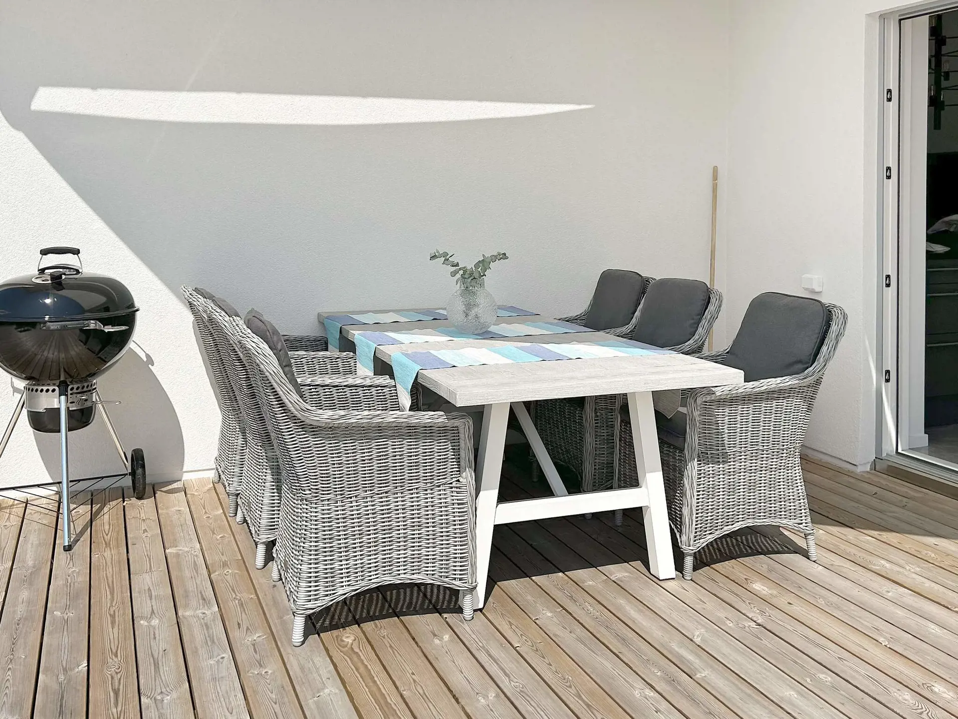 Das Ferienhaus hat zudem eine große, schöne Terrasse mit Meerblick, auf der Sie Gartenmöbel, Loungesesseln, Sonnenliegen und einen Grill vorfinden.