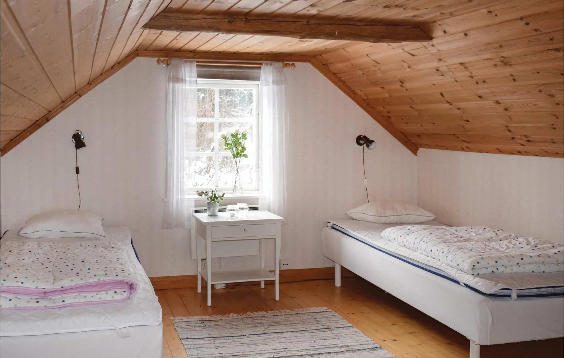 Das charmante Ferienhaus liegt ein wenig südlich von Vimmerby. Bei diesem Haus aus dem 19. Jahrhundert hat der Hauseigentümer sich darum gekümmert, dass viele Details bewahrt wurden, so auch der Holzherd in der Küche und der offene Kamin im Wohnzimmer. Die Küche wurde im Frühling 2018 renoviert. Geräumiges Wohnzimmer. Steile Treppe in die obere Etage mit einer 1,8 m hohen Decke und Dachschräge. Im Haus und im Garten wird viel Platz geboten. Auch für ein Kinderbett ist Platz vorhanden. Wenn die Äpfel im Sommer im Garten reifen, sind Sie willkommen, davon zu probieren. Im großen Garten sind mehrere Sitzgelegenheiten. Im Haupthaus wohnt zeitweise der Eigentümer. Fahrräder können von ihm billig gemietet werden. Ein kurzer Fußweg führt zum See Vilsjön (400 m), angeln ist dort gratis und ein Boot ist auch vorhanden. Seeblick herrscht vom Obergeschoss. Am See Solnen gibt es einen schönen Sandstrand mit Badesteg (2 km). Astrid Lindgrens Värld liegt 10 km entfernt, der Virum Elchpark 21 km und Västervik an der Küste 60 km.
