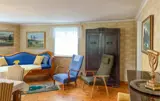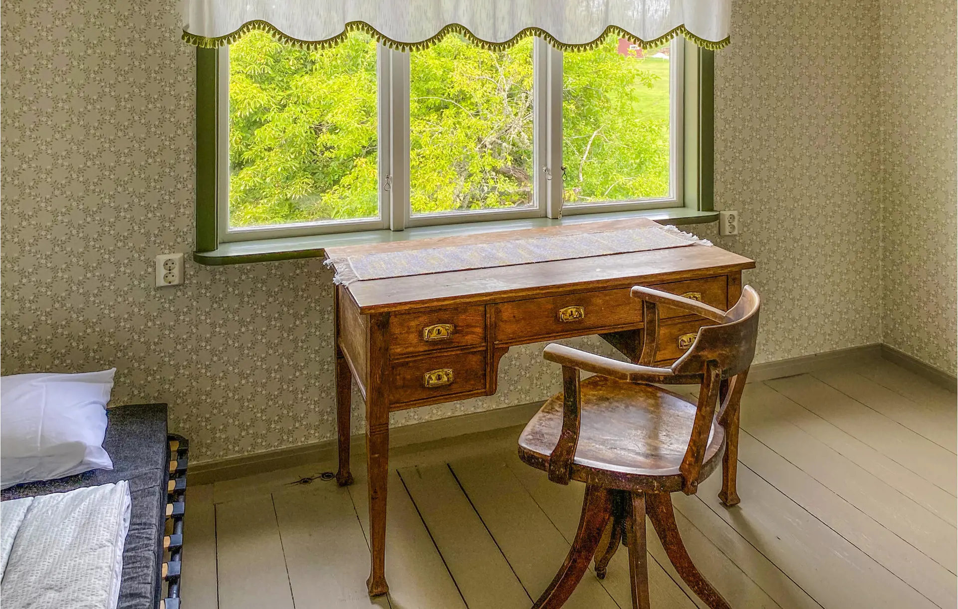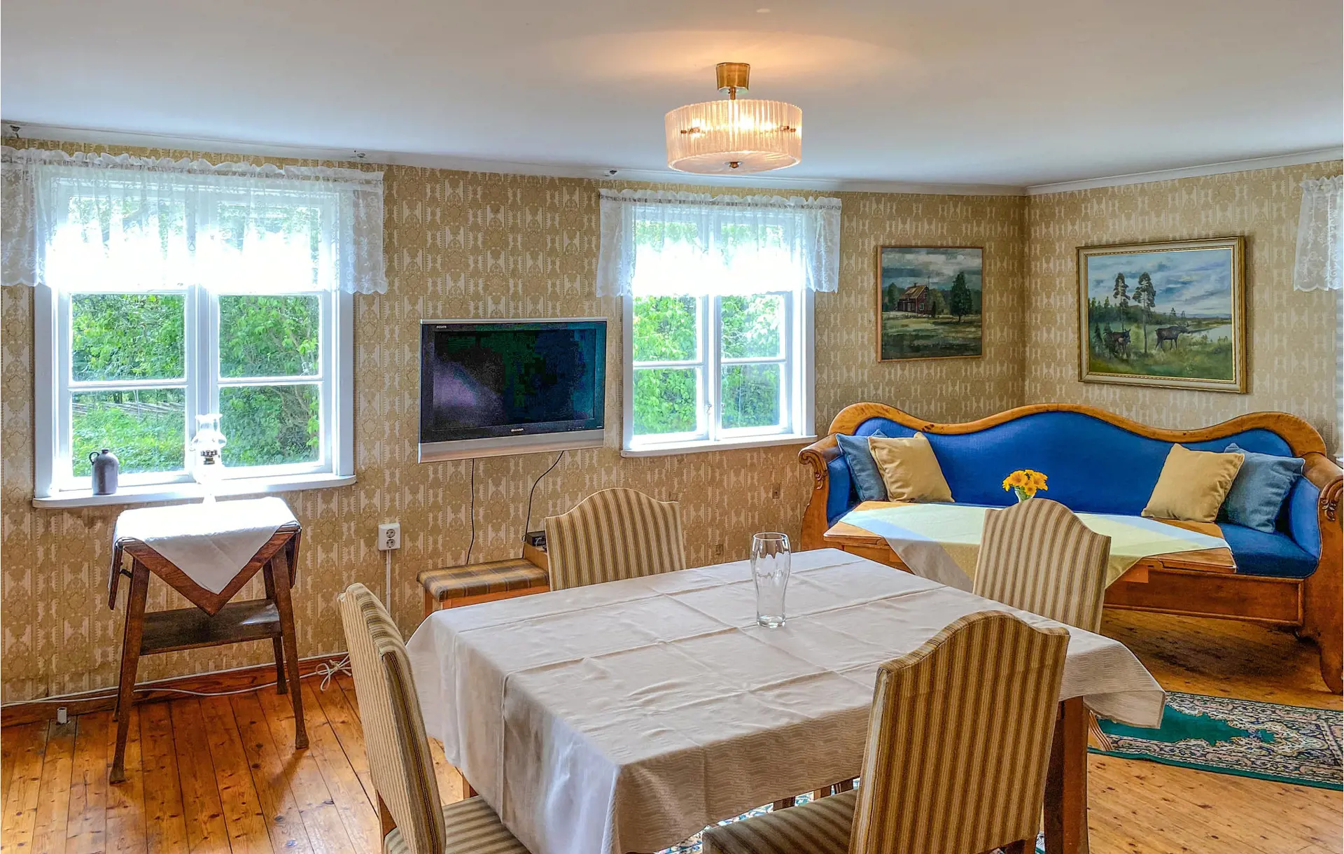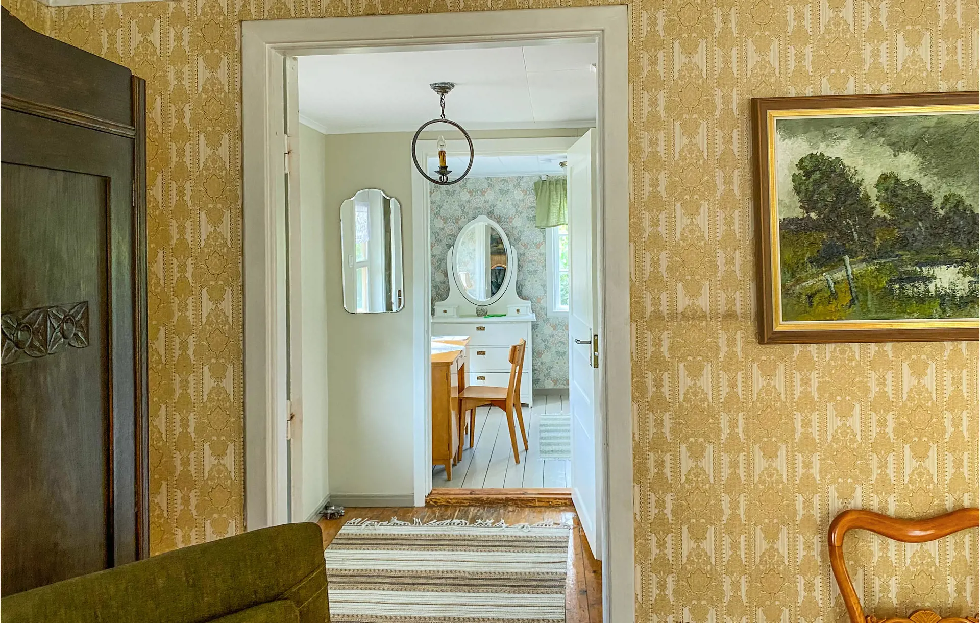 Das gemütliche Haus empfängt Sie in wunderbarer Lage nicht weit von einem See, in dem Sie sowohl baden als auch angeln können. Die gemütlichen Räume im charmanten Retro-Look mit authentischen Tapeten laden dazu ein, in vollen Zügen zu entspannen. Kehren Sie nach Ihren Unternehmungen in die wohnlichen Räume zurück, kochen Sie etwas Leckeres und speisen Sie im Wohnzimmer, später können Sie noch lange am behaglich prasselnden Kaminofen zusammensitzen.