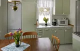 Wenn Sie auf der Suche nach friedlicher Abgeschiedenheit und natürlicher Idylle sind, dann ist dieses klasssiche Schweden-Ferienhaus genau das richtige für Sie. Überall empfängt Sie eine heimelige und ruhige Atmosphäre, weitab von der Hektik des Alltags. Im Inneren lädt die behagliche Wohnatmosphäre Ihres charmanten Ferienhauses zum Verweilen und Entspannen ein, zum Beispiel in der einladenden Sitzecke mit komfortablem Sofa. Kommen Sie in der Küche mit der Familie zusammen und bereiten Sie die gemeinsamen Mahlzeiten zu. Am Holzesstisch können Sie beim Essen den Blick nach draußen genießen und sich angeregt über die Pläne des Tages unterhalten.