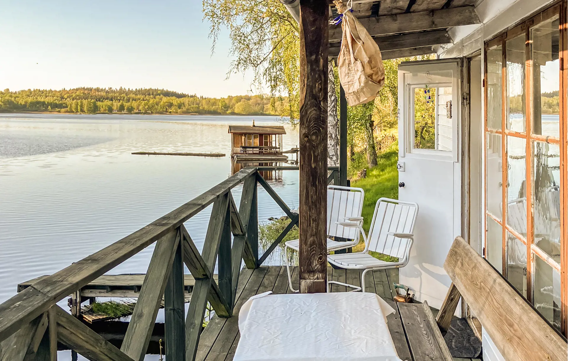 Gönnen Sie sich gleich nach dem Aufstehen ein herrliches Bad im See und servieren Sie sich Ihr Frühstück auf der charmanten Terrasse mit Blick aufs Wasser. Versuchen Sie Ihr Glück beim Angeln und genießen Sie die friedliche Atmosphäre bei einem romantischen Abend am Grill.