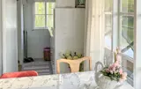 Direkt am See und eingebettet in ein lauschiges Naturgrundstück heißt Sie diese gemütliche Oase willkommen, in der Sie zu zweit die Seele baumeln lassen können. Bereiten Sie in der praktischen Küche kleine Mahlzeiten zu und speisen Sie mit Blick auf den ruhigen See. Entspannen Sie bei ruhigen Lesestunden und planen Sie abends bei einem Glas Wein Ihre Unternehmungen für den nächsten Tag.