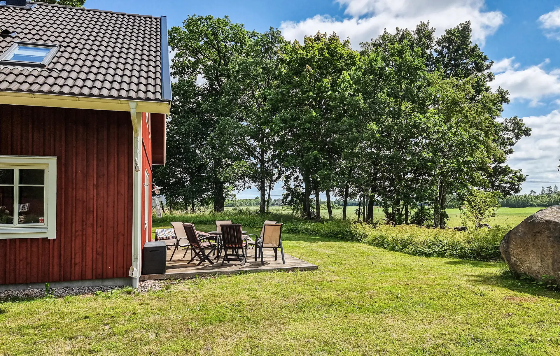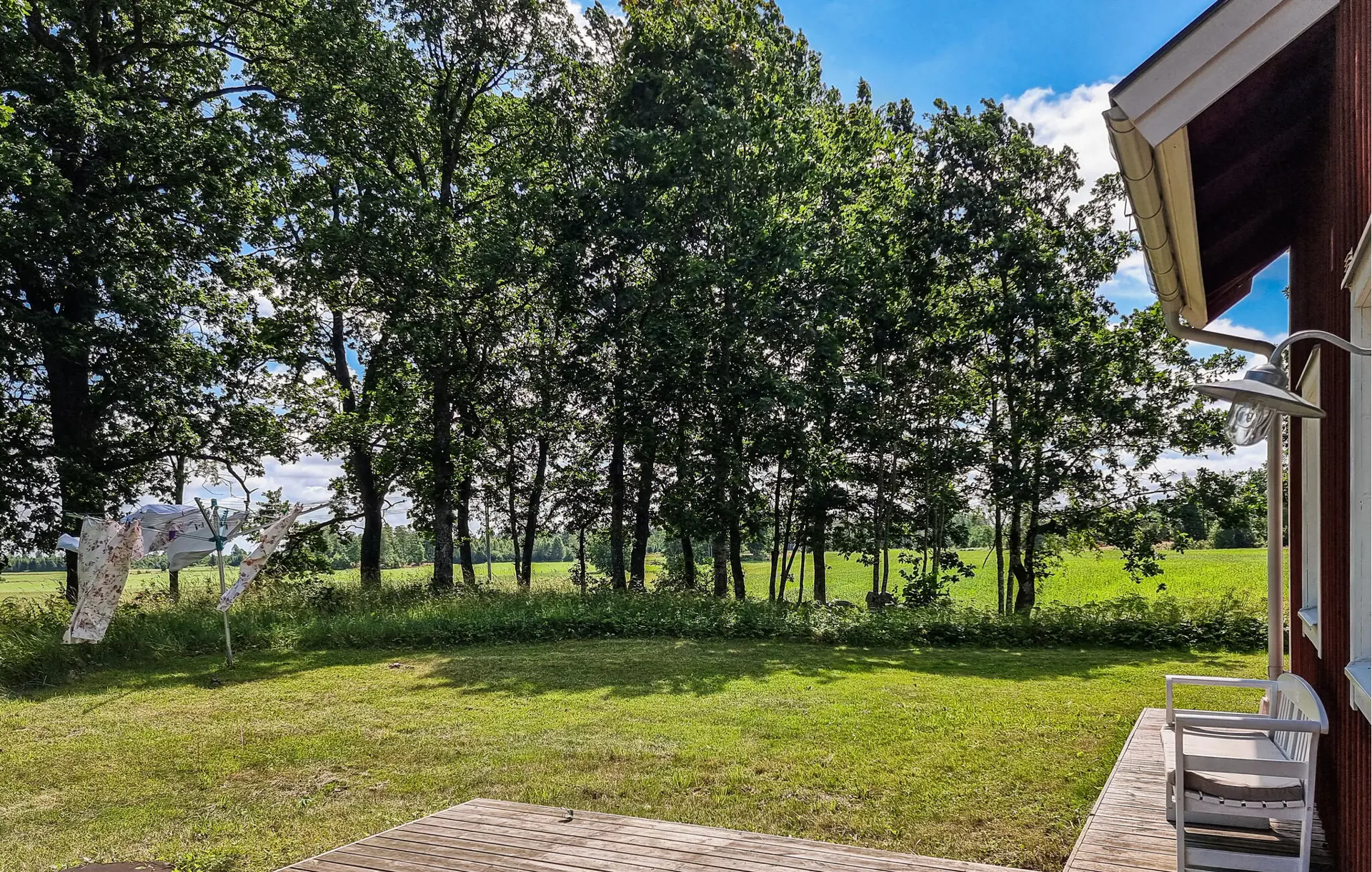Umgeben von Wiesen, Feldern und Wäldern empfängt Sie dieses typisch schwedenrote Holzhaus mit idyllischem Garten.