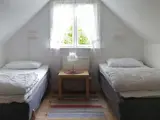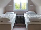 Das Ferienhaus hat eine große Küche und ein geräumiges Wohnzimmer mit Essecke. Insgesamt gibt es im Ferienhaus drei Schlafzimmer mit jeweils 2 Einzelbetten. Bei Bedarf kann man zudem in einem Zimmer auch 2 Zustellbetten (Klappbetten) nutzen. Zwei der Schlafzimmer befinden sich oben im Dachgeschoss, das über eine etwas niedrigere Deckenhöhe und Dachschrägen verfügt.