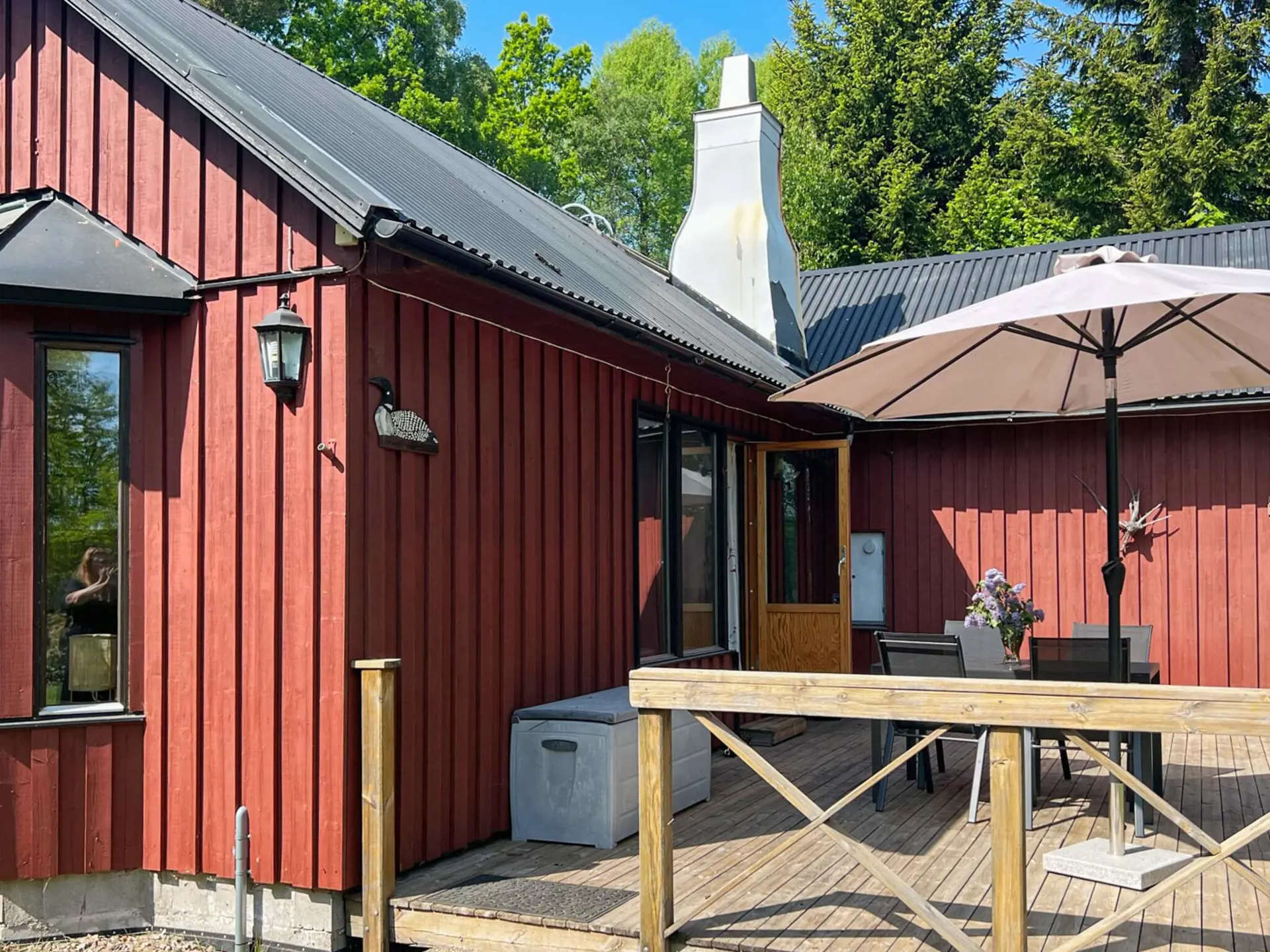 In der kleinen Gemeinde Skeen, nur einen Steinwurf von einem gemütlichen Badeufer entfernt, liegt dieses traditionelle Ferienhäuschen. Hier haben Sie Ihre eigene schöne Oase im üppigen Garten zur Verfügung, wobei der kleine See nur etwas mehr als 40 m entfernt ist. Vom Garten aus trennt Sie nur die Böschung vom Badebereich, sodass Sie sich etwa 10 m von der Grundstücksgrenze entfernt schon am Seeufer befinden; nah dran, aber dennoch abgeschirmt!