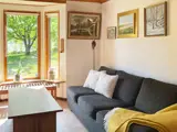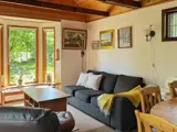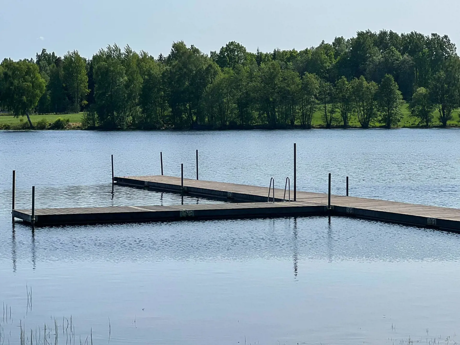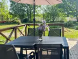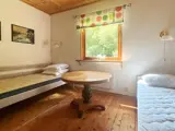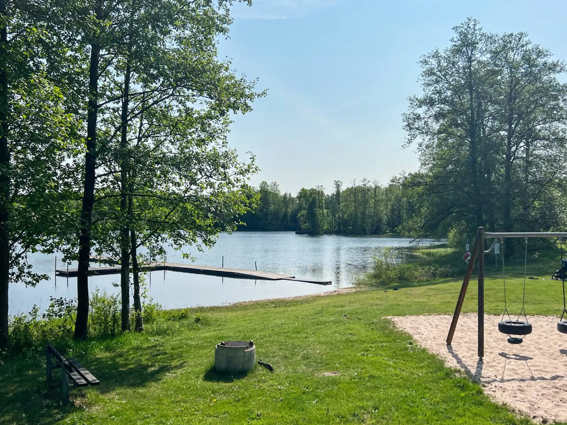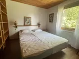Das Ferienhaus bietet zwei Schlafzimmern; eines mit einem Doppelbett und eines mit zwei Einzelbetten. In der Mitte des Hauses befindet sich die Küche, die direkt an das Wohnzimmer angrenzt, in dem sich auch der Essbereich befindet. Vor dem Wohnzimmer liegt die schöne Holzterrasse mit Gartenmöbeln und schönem Ausblick. Im Garten ringsum gibt es jede Menge Platz für Spiel und Spaß der Kinder. Das nächste Ufer wartet zudem direkt hinter der Böschung auf Sie. Dort stehen auch Schaukeln, ein Sandkasten, Grillplatz und Badesteg zur Verfügung. Wer auswärts essen gehen möchte, findet in ca. 900 m Entfernung ein Restaurant.