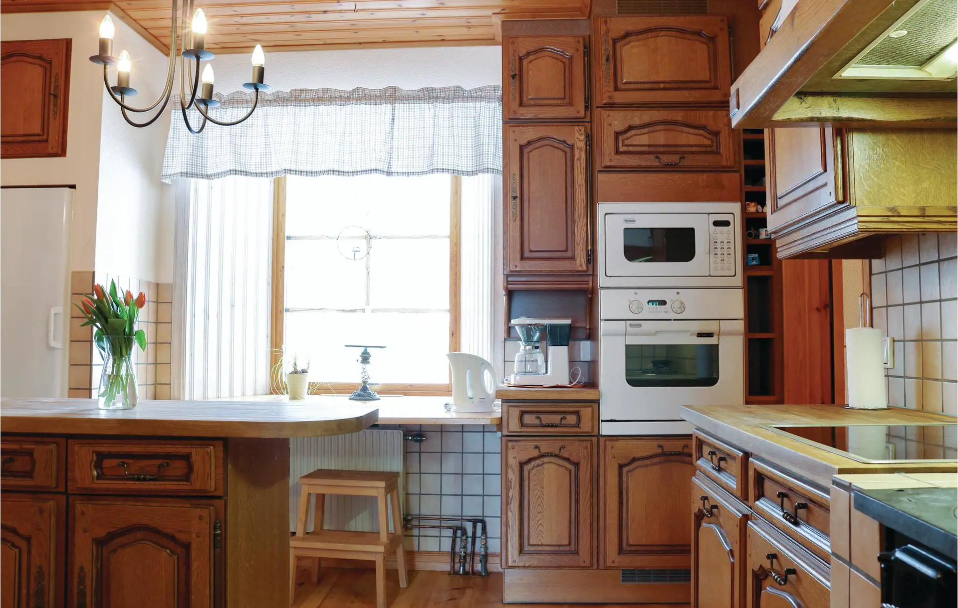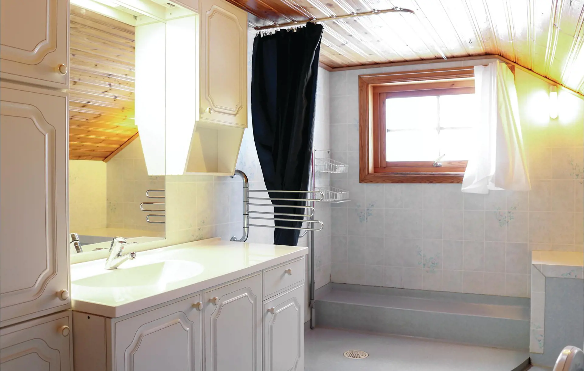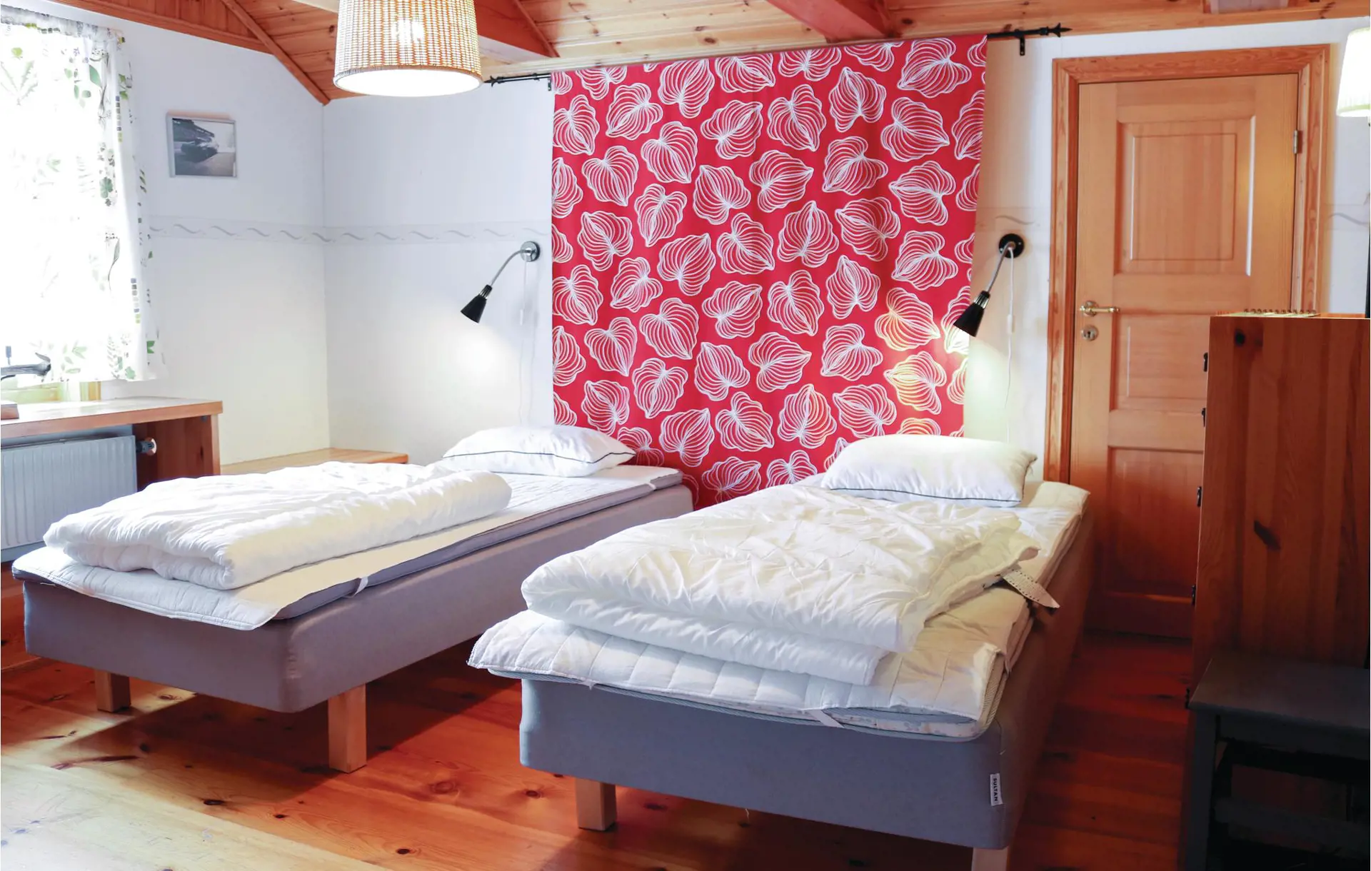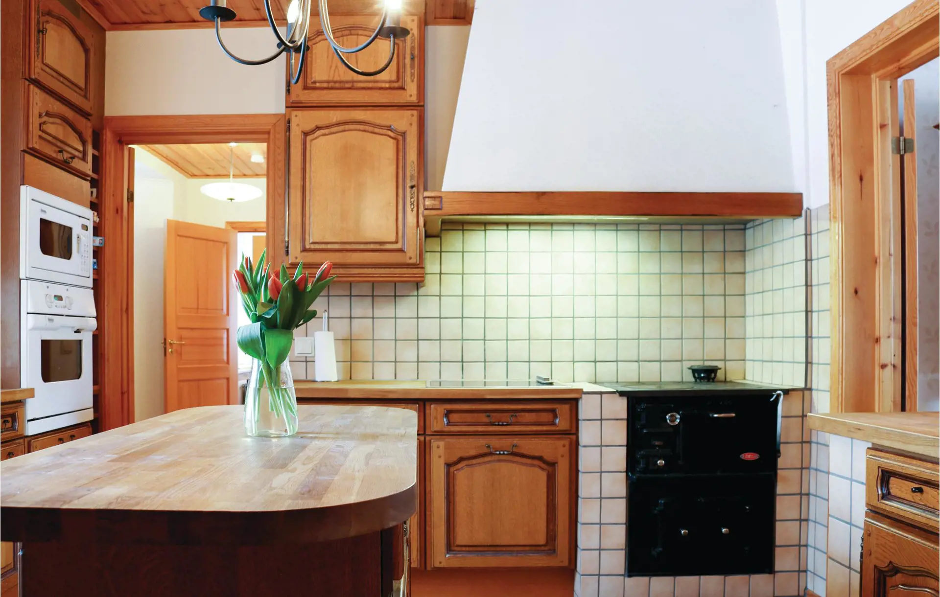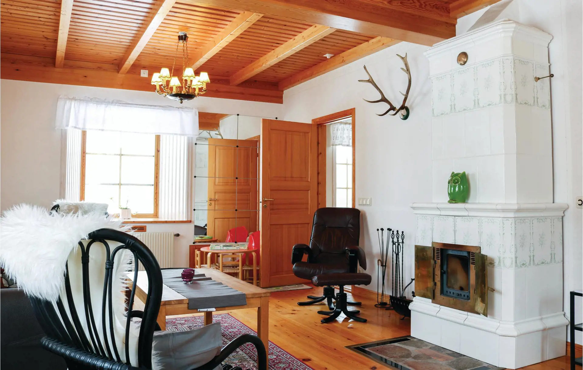Das Haus verfügt über eine herrliche Küche mit Kochinsel. Klinker und Holzböden in fast allen Räumen. Großes, herrliches Wohnzimmer mit Kachelofen. Ein Schlafzimmer im Obergeschoss wird mit Vorhang abgetrennt. Gute Angelgewässer in den Seen Möckeln und Tornsjön (1,5 km).