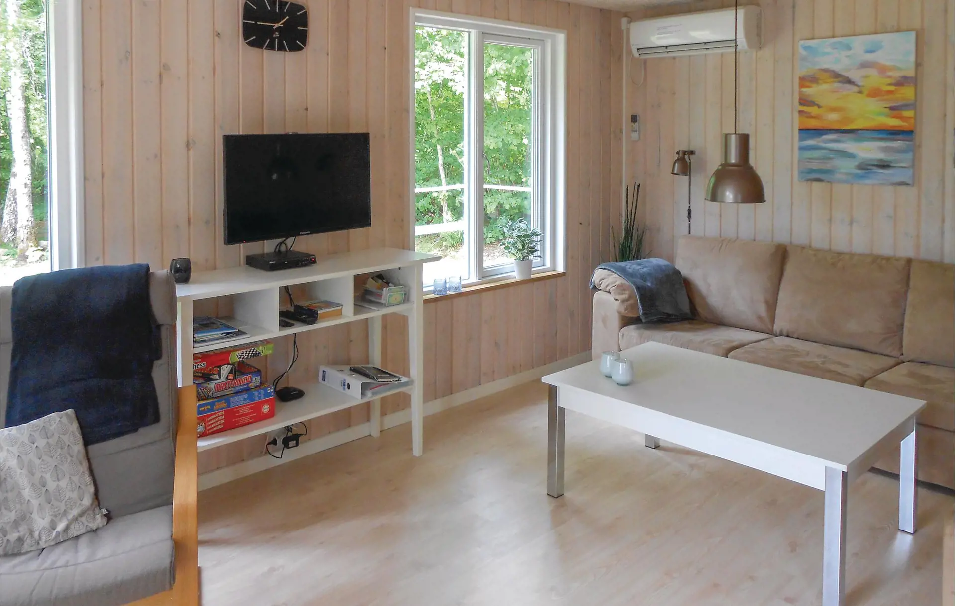Das charmante Ferienhaus am Waldrand liegt nur 400 m vom See Unnen, in der Nähe von Odensjö. Große Terrasse auf drei Seiten des Hauses. Sie werden im Haus von einem gepflegten Wohnzimmer empfangen, das Sie durch eine schöne Halle betreten. Komplett ausgestattete Küche mit Spülmaschine, im Badezimmer genießen Behaglichkeit zur die Fußbodenheizung. Ein Schlafzimmer liegt im Erdgeschoss, eine Treppe bringt Sie auf den Schalfboden. Auf dem Hems sind vie Betten, die Dachschräge reicht auf 180 cm herab. Für die Reinigung Ihres Fischfangs steht ein Reinigungsplatz im Freien zur Verfügung. Vier Kilometer vom Haus liegt der Bolmen. Als Ausflugsziel eignet sich auch der Nationalpark Store Mossen. High Chaparral oder Halmstad bieten auch schöne Urlaubserlebnisse. Einkaufen können Sie in Unnaryd, Ullared und Värnamo. S25079, 400 m.