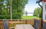 Genießen Sie die malerische Aussicht auf den See von der Terrasse dieses charmanten Ferienhauses.
