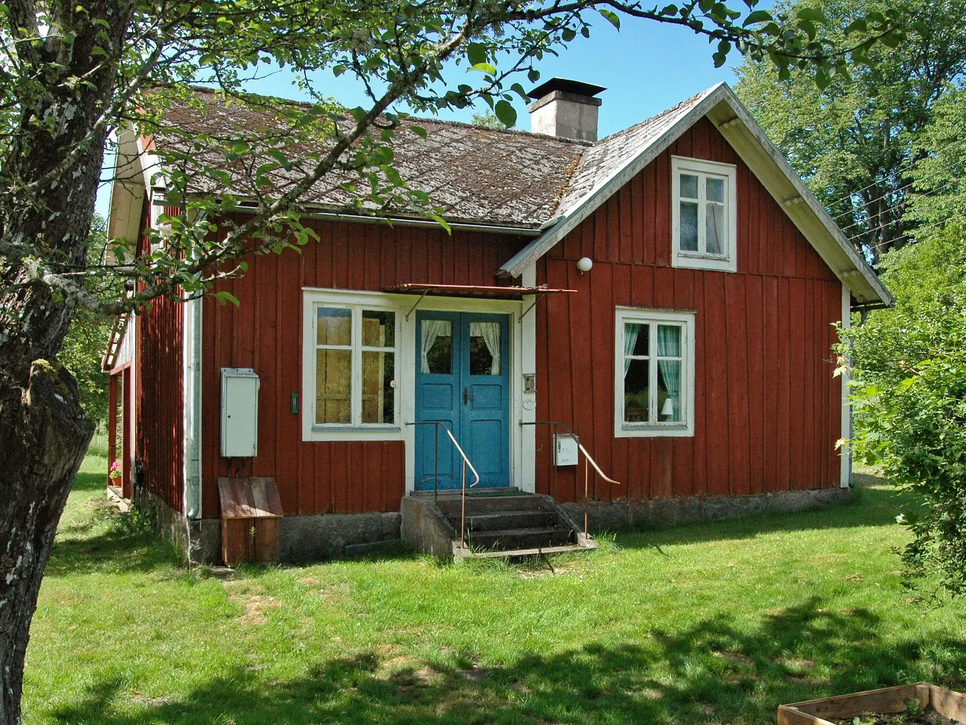 Willkommen in diesem traditionellen, alten Kleinsiedlerhaus im Dorf Kalvshaga. Die ländliche Umgebung mit vielen Obstbäumen und Beerensträuchern ist reizvoll.