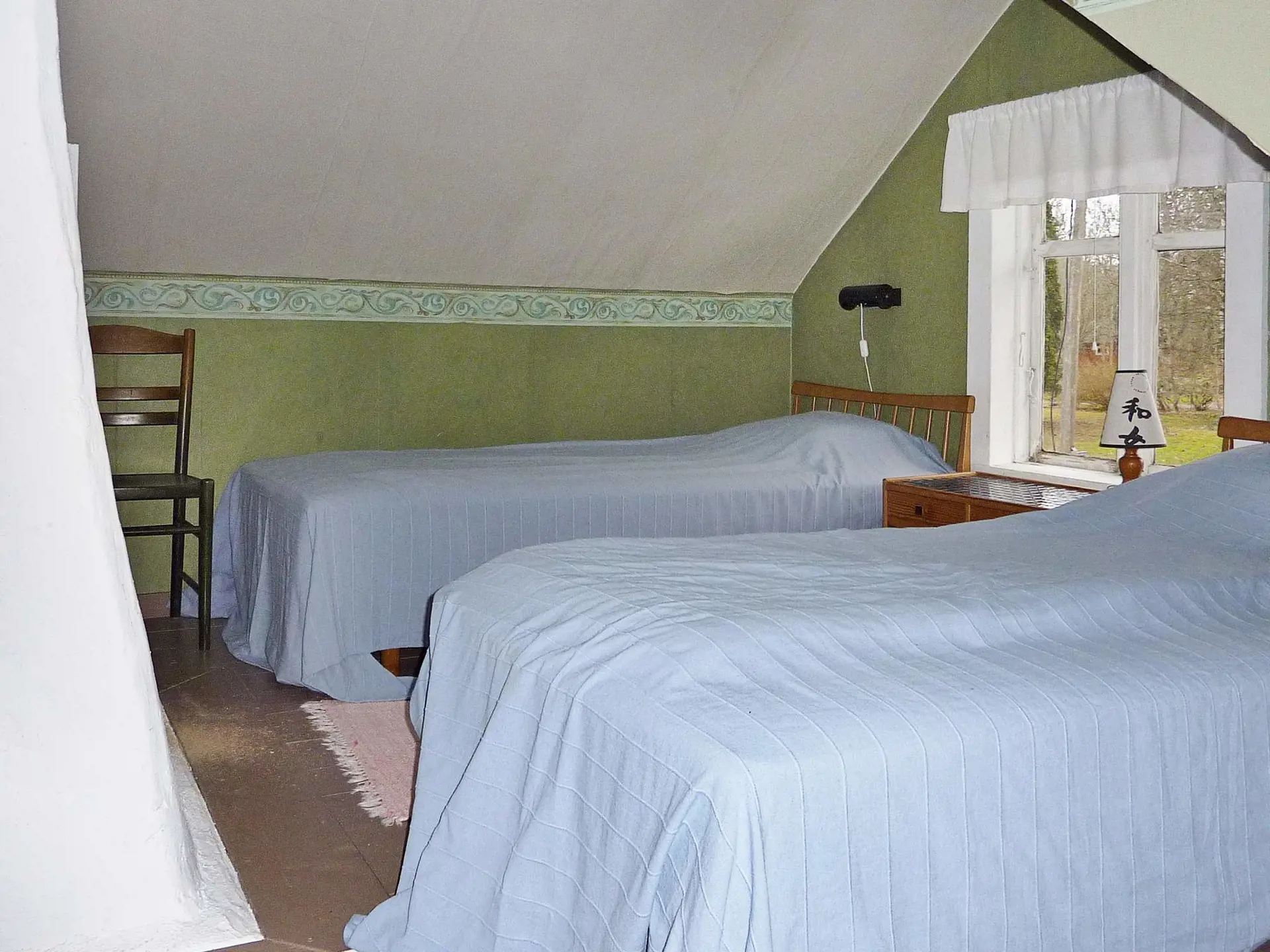 Schönes Grundstück mit Sitzplatz und Grill für Sommertage. Zudem überdachte Veranda für Mahlzeiten im Freien. Im Wohnzimmer steht für kühlere Tage ein Kachelofen bereit. Küche mit traditionellem Holz- sowie Elektro-Herd und Mikrowelle. Außerdem WC im Haus. Dusche im Annex, ca. 10 entfernt. Im Parterre auch 1 SZ mit 2B. Dachgeschoss mit Dachschrägen und dadurch eingeschränkter Deckenhöhe (max. 190 cm) und 3B. Eine günstige Unterkunft im Grünen, nur für Gäste ohne Ansprüche an Komfort und moderne Einrichtung. Das Haus wurde zuletzt 1929 renoviert.