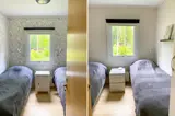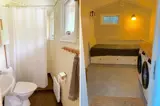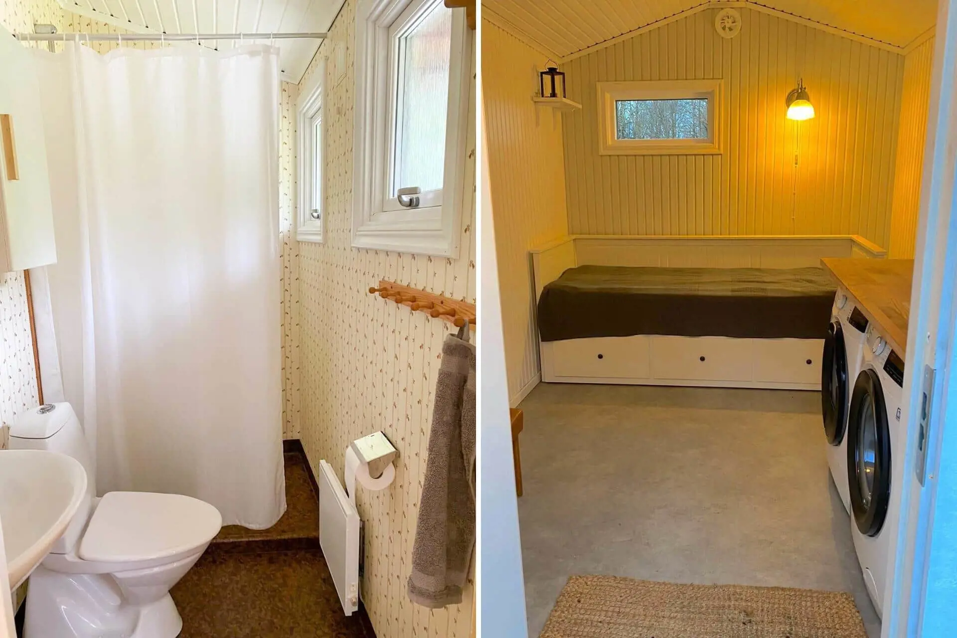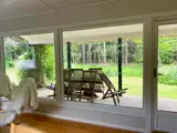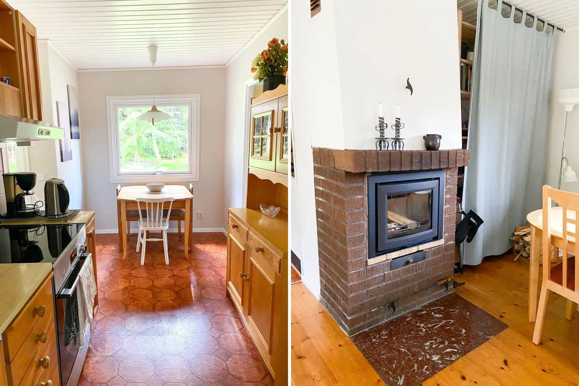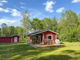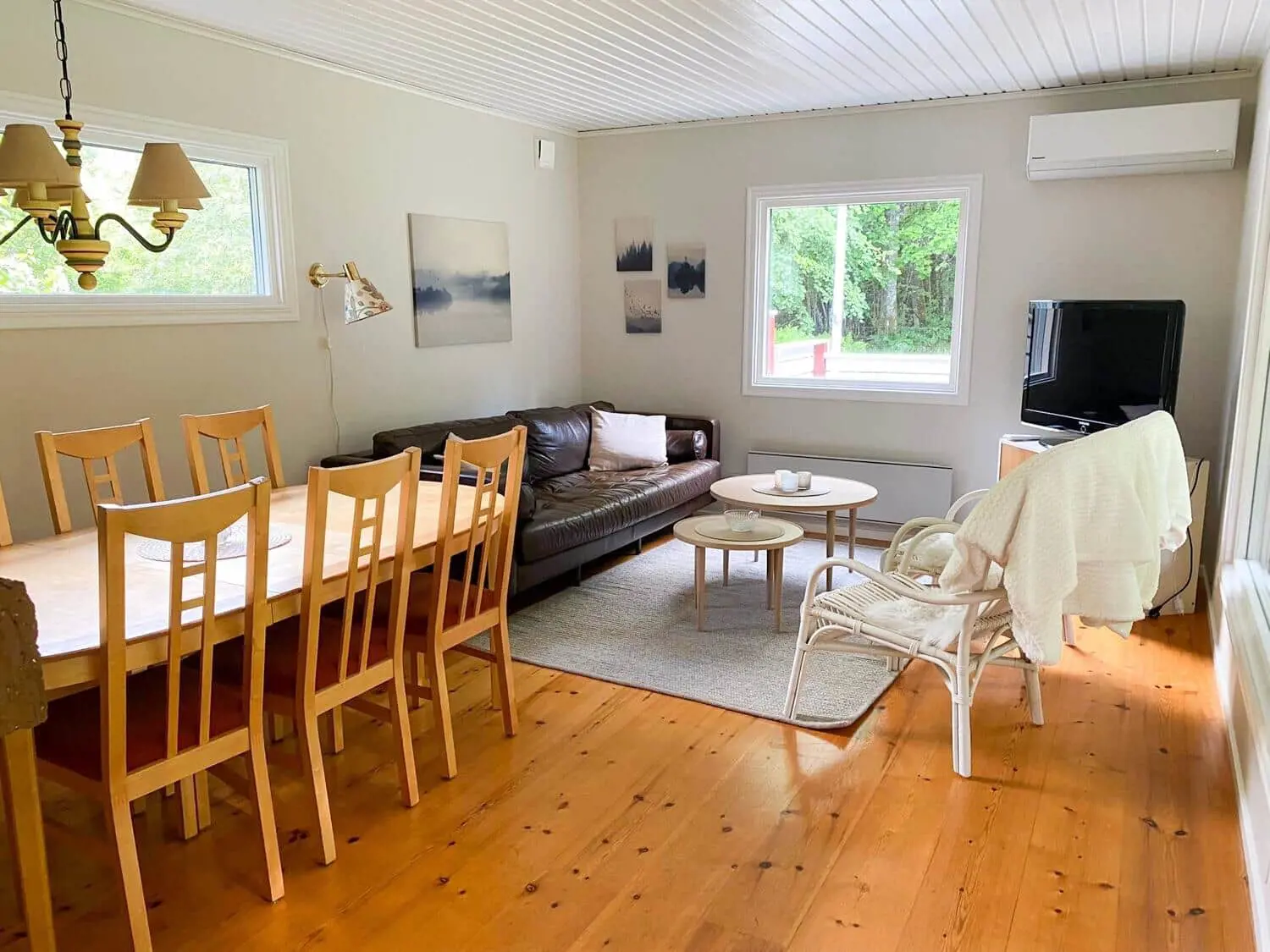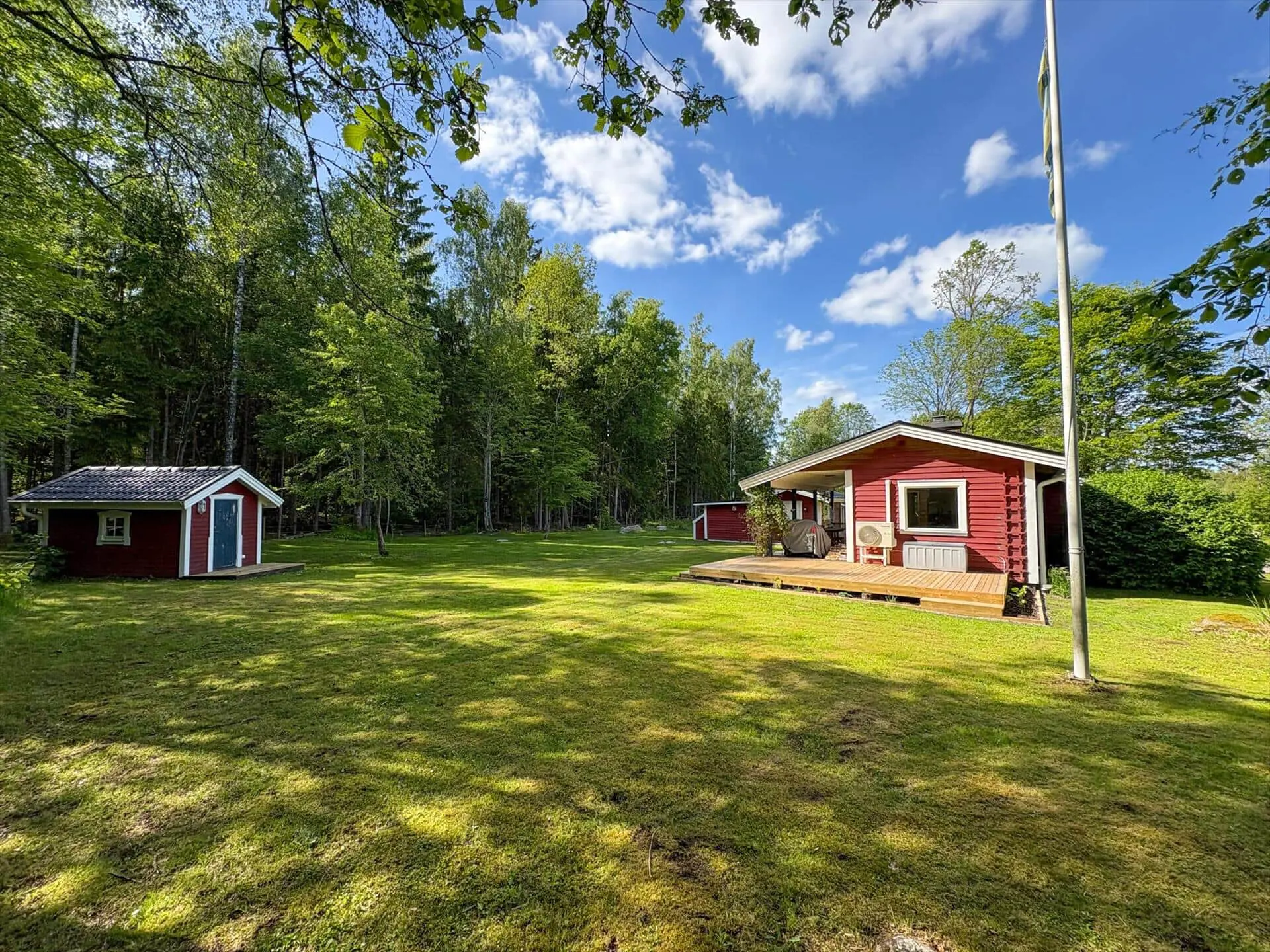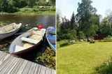 Das etwa 54 m² große Ferienhaus, ergänzt durch ein kleines Gästehaus von etwa 10 m², liegt auf einem gepflegten, großen Wiesengrundstück, auf das man von der an der hinteren Längsseite des Hauses befindlichen, überdachte und mit Sommermöbeln ausgestattete Veranda einen tollen Blick hat. Im Haus selbst findet man eine schmal geschnittene Küche, ausgestattet mit Elektroherd mit Backofen, Kühlschrank mit Gefrierfach, Mikrowelle und Kaffeemaschine sowie einem kleinen Esstisch. Es schließt sich ein Wohn- und Essbereich an, mit Kaminofen für kuschelige Abende, der mit einem Esstisch und einer Sofasitzecke möbliert ist. Ein TV-Gerät zum Anschließen eigener mitgebrachter Elektronikgeräte per HDMI steht bereit; es gibt jedoch keinen Fernsehempfang. Zwei Schlafzimmer verfügen jeweils über zwei Einzelbetten. Darüber hinaus steht in dem erwähnten kleinen Gästehaus ein Bettsofa für zwei Personen zur Verfügung. Hier sind außerdem eine Waschmaschine und ein Trockner untergebracht. Das Badezimmer im Ferienhaus verfügt über WC, Dusche sowie ein Handwaschbecken. Einen Parkplatz gibt es direkt am Ferienhaus. Außerdem steht dir ein Ruderboot mit elektrischem Motor nach Absprache kostenlos zur Verfügung.