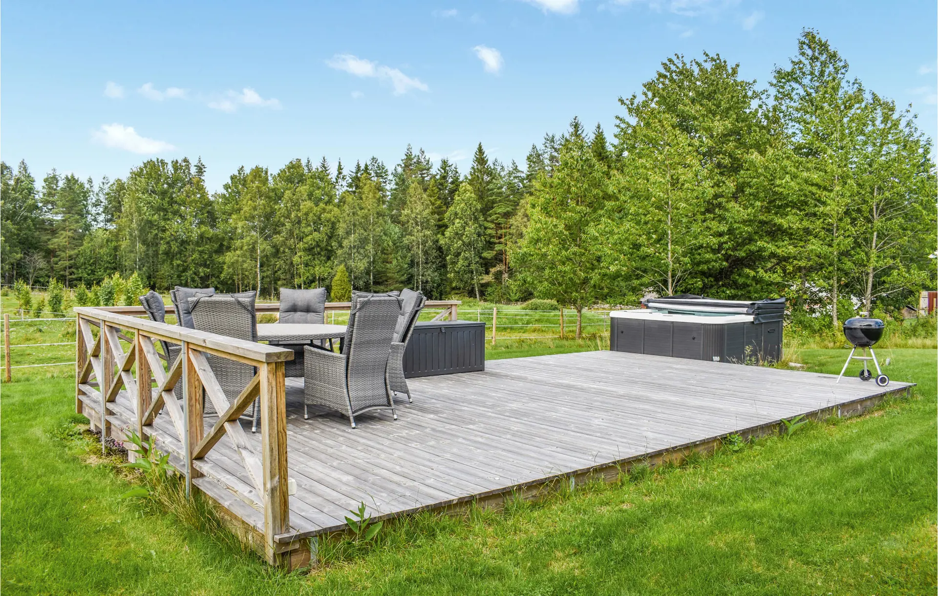 Dieses großräumige Haus liegt schön auf dem Lande, fernab von Hektik und Trubel, und zeichnet sich durch seine gemütlichen Räume mit einladendem Dekor und ruhigen Farben aus, die zu Ihrem persönlichen Wohlfühlort werden. Am Esstisch können Sie tolle Ausflüge planen und lustige Spieleabende veranstalten. An kalten Tagen können Sie den Holzofen anfeuern und heiße Schokolade mit Sahne schlemmen. Umgeben von Wald und Weiden verspricht das Haus aktive Familientage und ist die perfekte Wahl für alle, die Ihre Privatsphäre, Ruhe und Natur schätzen. Genießen Sie laue Sommerabende auf der offenen Terrasse und verwöhnen Sie sich tagsüber im beheizten Standwasser-Whirlpool. Auf dem Naturgrundstück werden sich Ihre Kinder definitiv nicht langweilen, denn für das Spielen gibt es genug Platz. Ein Ruderboot und ein Bootsanlegeplatz stehen Ihnen zur Verfügung.