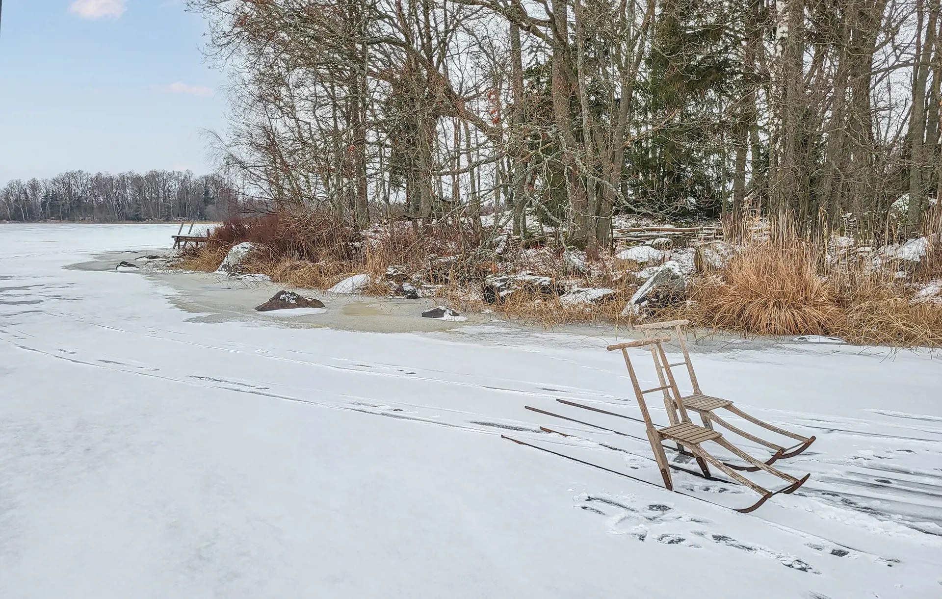 Verbringen Sie Zeit im großen Garten oder folgen Sie dem Pfad zum Wasser. Am hölzernen Badesteg oder auf der kleinen Plattform mit Picknickbänken und Grill lässt sich die Natur aus nächster Nähe erleben. Machen Sie es sich dort mit einem Kaffee bequem oder bereiten Sie ein Abendessen unter freiem Himmel zu. Der Blick über den See schafft eine ganz besondere Ruhe.