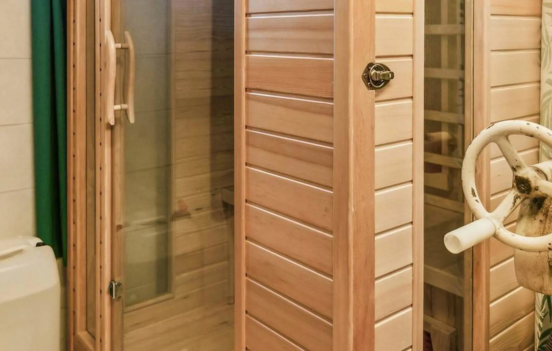 Erleben Sie einen entspannten Urlaub in Ihrer hellen, gepflegten Unterkunft. Betreten Sie den freundlichen Wohnbereich und spüren Sie die behagliche Atmosphäre. Entspannen Sie auf dem Sofa bei einem guten Buch oder vor dem Fernseher, während das Sonnenlicht durch die großen Fenster fällt. Die Einrichtung ist geschmackvoll gewählt – helle Farben, sanfte Muster und stilvolle Lampen schaffen eine einladende Stimmung. Nehmen Sie Ihre Mahlzeiten im eleganten Essbereich ein und kochen Sie in der modernen Küche mit hochwertigen Geräten. Nach einem erlebnisreichen Tag genießen Sie die private Sauna, die Körper und Geist wohltuend entspannt.