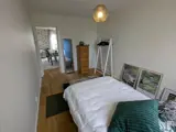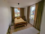 Die beiden Schlafzimmer im Erdgeschoss sind vom Wohnzimmer aus zu erreichen. Das rechte ist in Gelbtönen gehalten, beinhaltet ein schmales Doppelbett (120 x 200 cm), geschliffenes Parkett und einen Kleiderschrank. Das linke ist in Grüntönen gehalten, mit einem weiteren schmalen Doppelbett (120 x 200 cm), geschliffenem Parkett, Kleiderständer und Kommode.