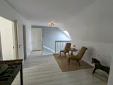 Im Obergeschoss ist überall Laminatboden verlegt.