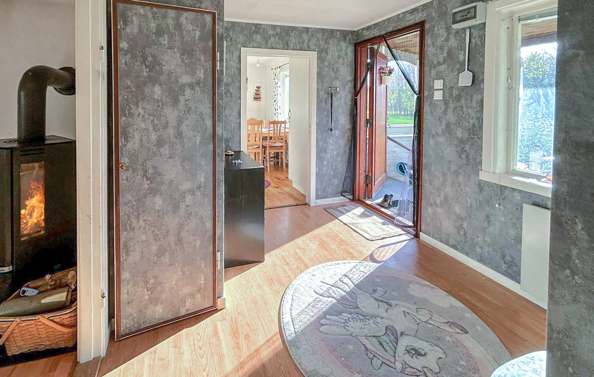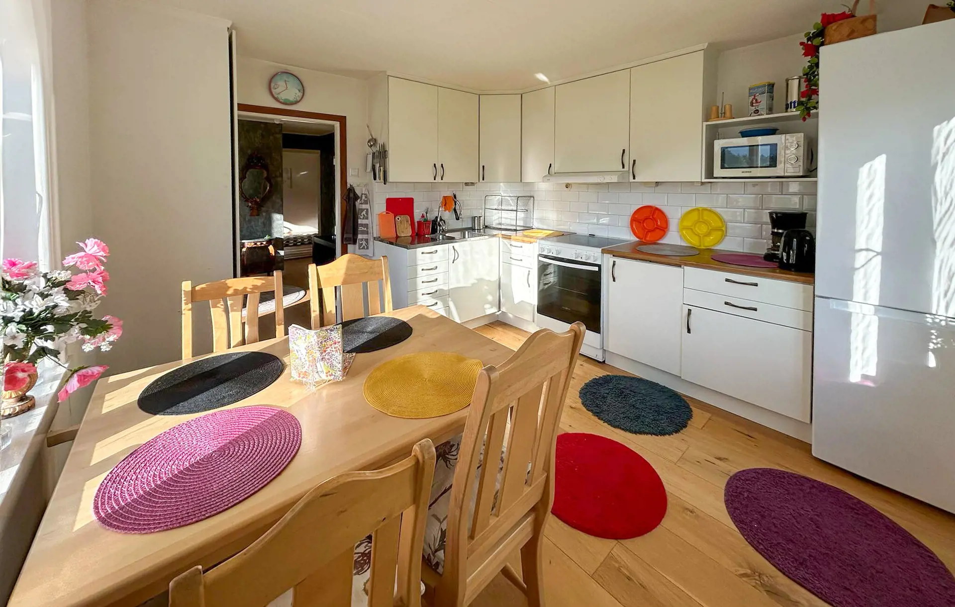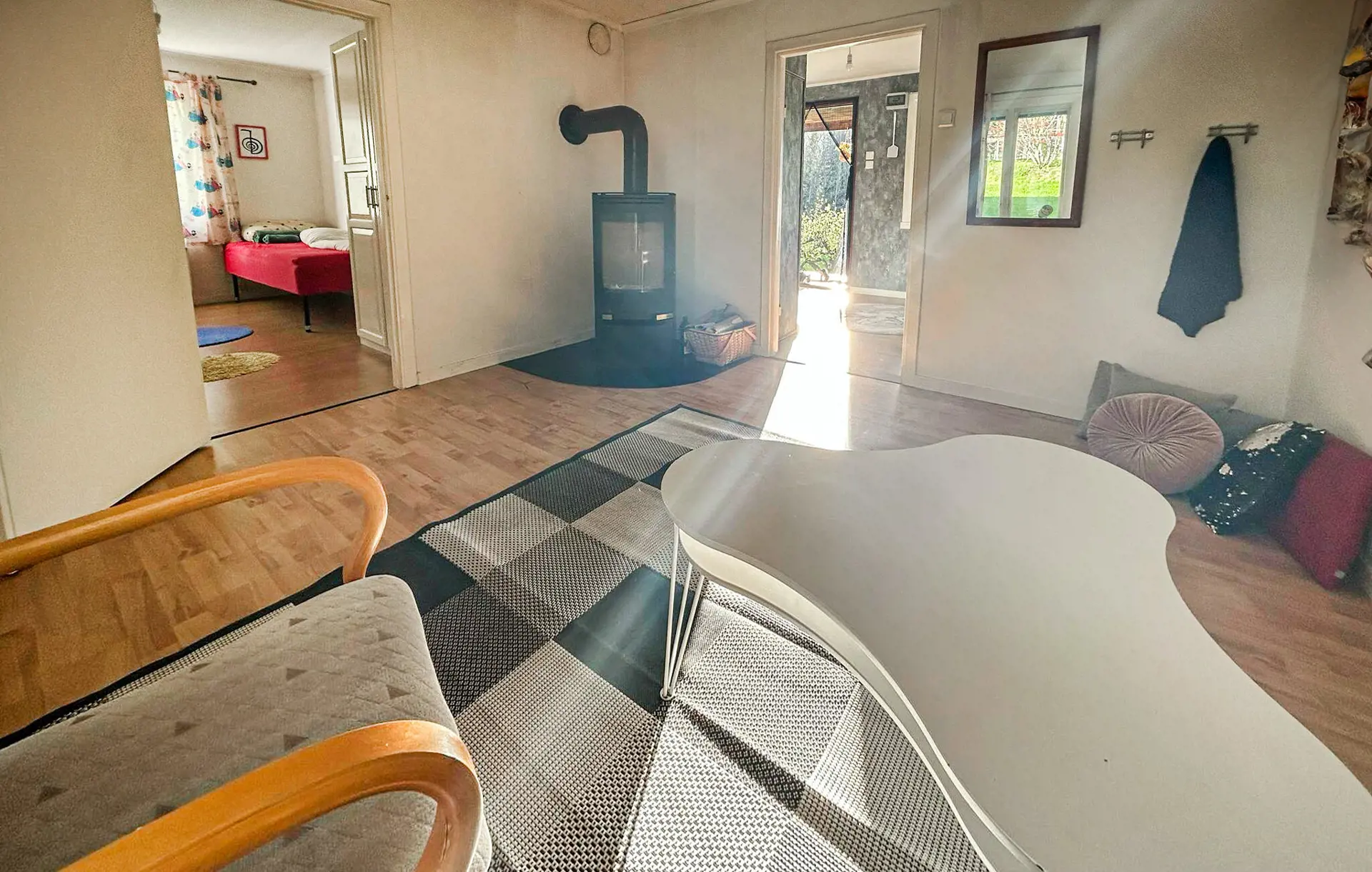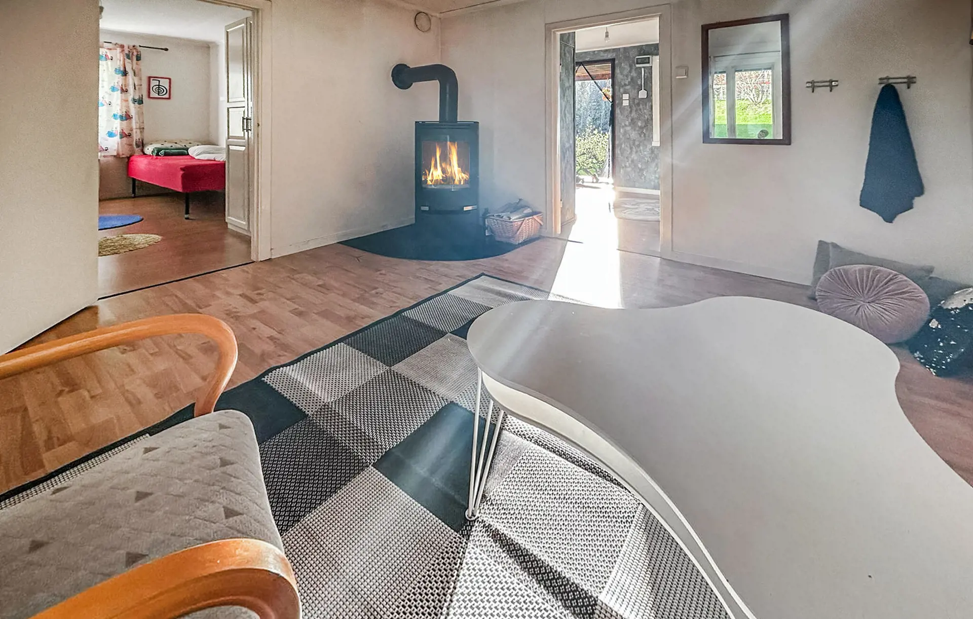Eingebettet in einen weitläufigen Garten und nicht weit von einem schönen Badesee entfernt, begrüßt Sie dieses helle und geräumige Urlaubsdomizil. Freuen Sie sich auf gemeinsame Kochabende und gemütliche Mahlzeiten in der einladenden Wohnküche, veranstalten Sie fröhliche Spieleabende im Wohnzimmer und lauschen Sie bei ruhigen Lesestunden oder einem Brettspiel dem Knistern des Kaminfeuers.