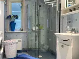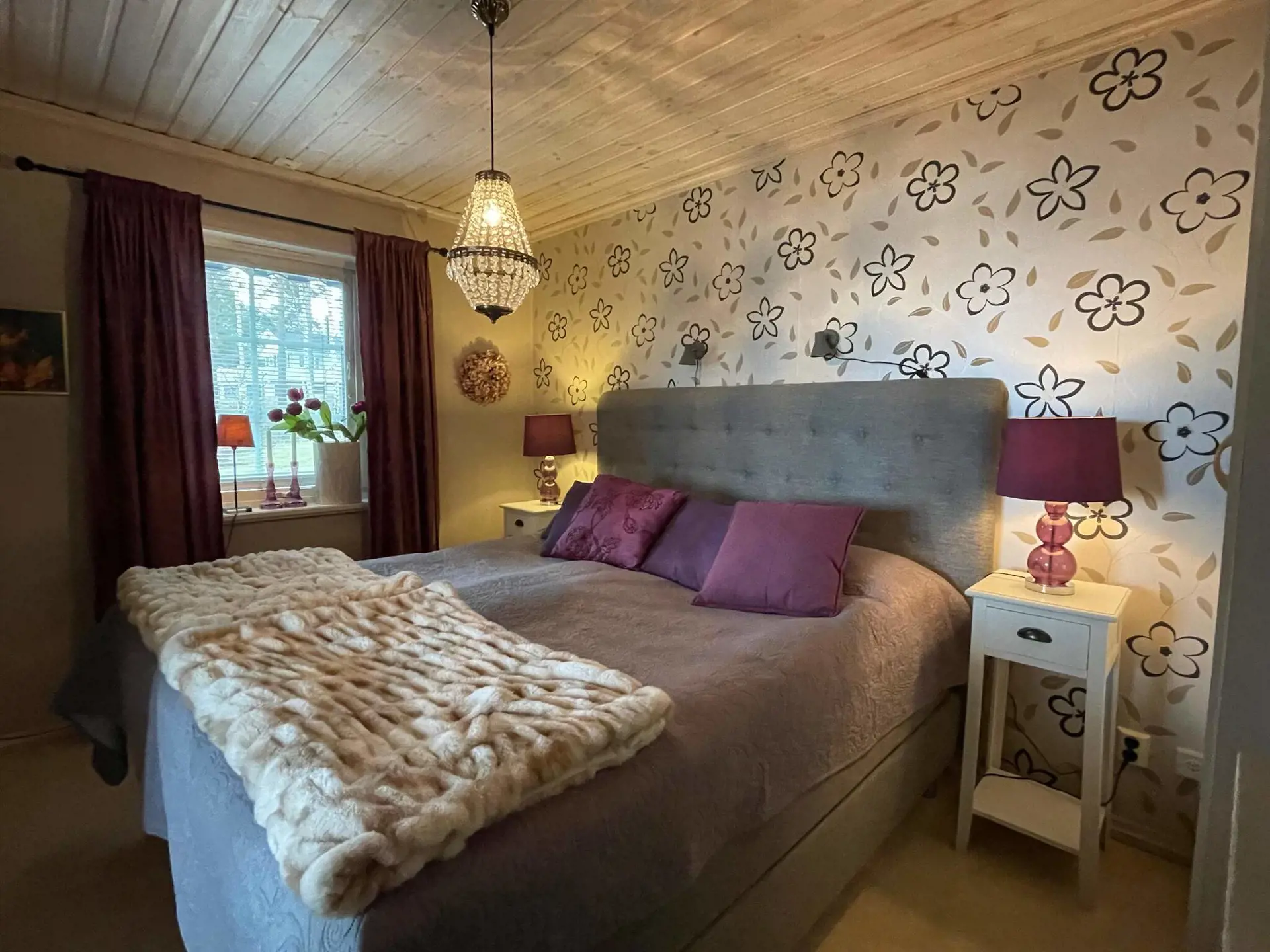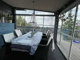 Ein einladender Eingang mit einer großen überdachten Veranda mit einem kleinen Sitzbereich und einem Tisch. Das Haus hat größtenteils einen komplett offenen Grundriss mit Küche, Familienzimmer und Essbereich in einer Reihe. Die Küche ist neu renoviert und sehr geschmackvoll mit einer großzügigen Essecke, Geschirrspüler, kleinem Fernseher für frühe Nachrichten und einem herrlichen Meerblick. Angrenzend befindet sich das Familienzimmer und das separate Esszimmer mit bequemen und großen Essmöbeln. Auch aus diesen beiden Räumen ist der Meerblick fantastisch. Vom Speisesaal gibt es einen Ausgang zum verglasten Wintergarten, der wahrscheinlich ein beliebter Ort sowohl am frühen Morgen als auch an warmen, angenehmen Abenden mit Abendessen und unterhaltsamem Bootsverkehr auf dem See sein wird. Zwei Schlafzimmer, eines mit Doppelbett und das andere etwas kleiner mit einem Etagenbett. Großer WC-/Duschbereich, in dem sich auch eine Waschmaschine befindet.