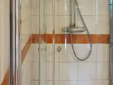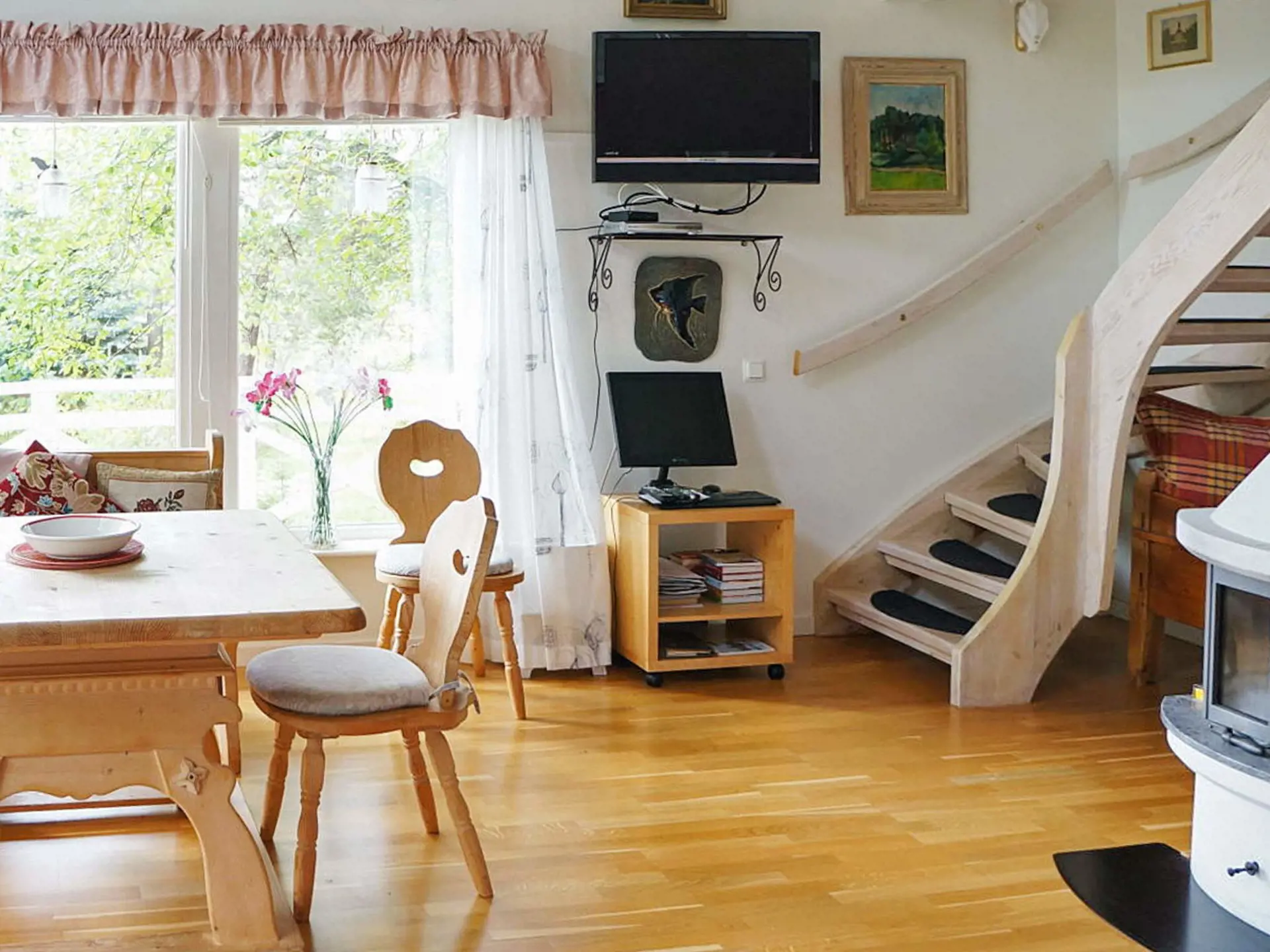 Kleine, überdachte Veranda am Eingang. Das Ferienhaus ist größtenteils ebenerdig, mit lediglich einem Schlafboden oben unter der Dachschräge. Im Parterre befindet sich ein weiteres, helles Schlafzimmer mit zwei Einzelbetten. Außerdem großer Küchen-/Wohnbereich für das Familienleben, mit Kaminofen für kühlere Abende. Zur Küchenausstattung gehört auch ein Geschirrspüler. Im Wohnbereich gibt es eine Sitzecke und einen Esstisch aus rustikalem Holz. Zudem großer Flachbild-Fernseher mit einigen deutschen Sendern zur Auswahl. Das Badezimmer ist gefliest und mit Dusche/WC, angenehmer Fußbodenheizung sowie Waschmaschine ausgestattet.