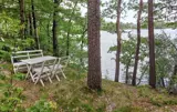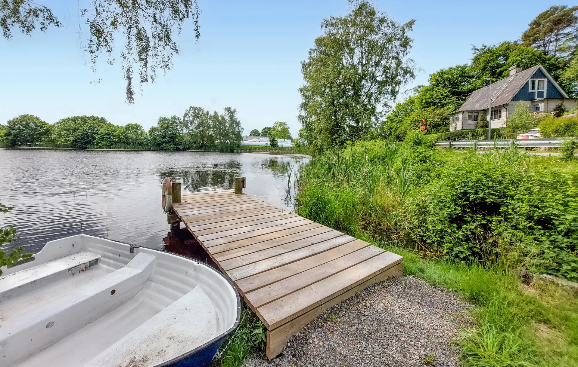 Das grüne Naturgrundstück liegt zwischen zwei Seen – erfrischen Sie sich bei einem Bad am Pier, lassen Sie die friedliche Atmosphäre bei einem Frühstück im Freien auf sich wirken, nutzen Sie das Ruderboot und versuchen Sie Ihr Glück beim Angeln. Entfachen Sie den Grill und genießen Sie die Ruhe fernab vom Alltag.
